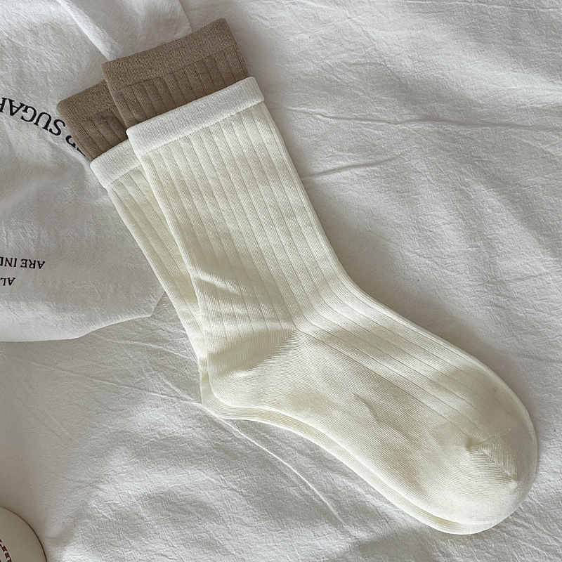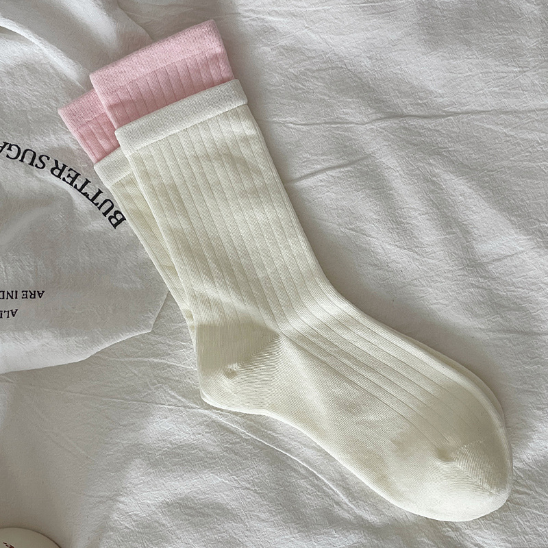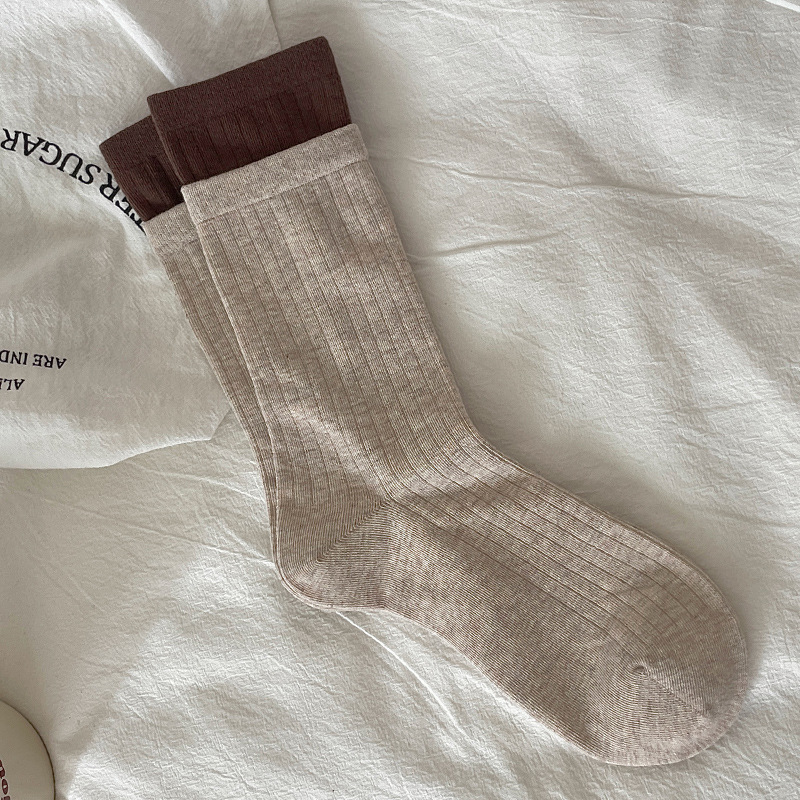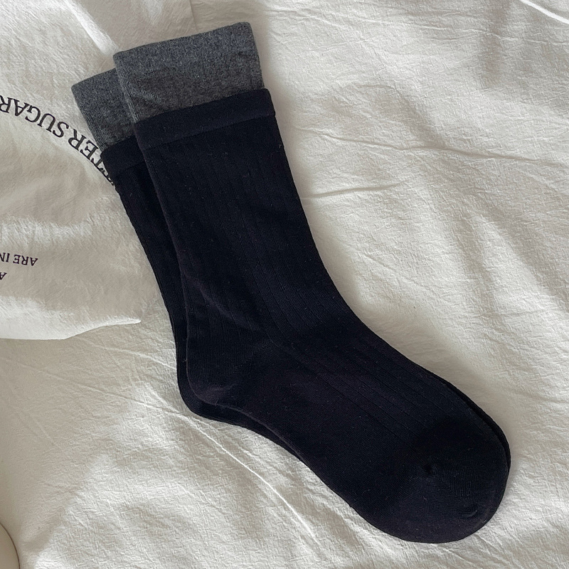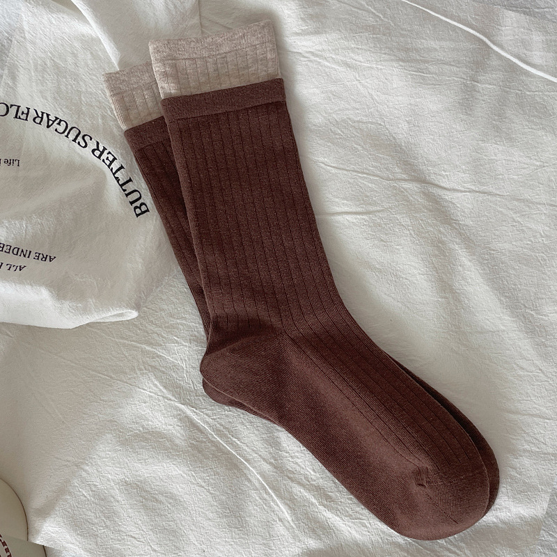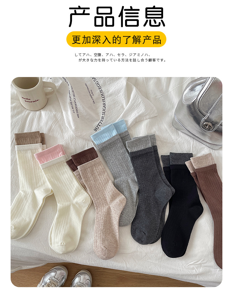봄과 가을 더블 라커우 대비 컬러 올매치 코튼 스택 양말 여성용 미드 배럴 컬러 매칭 더블 양말 Instagram 패셔너블 스타킹