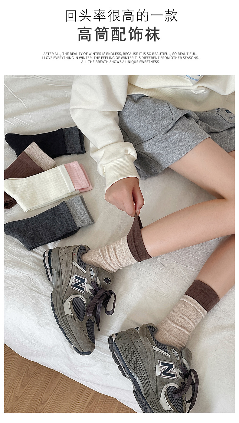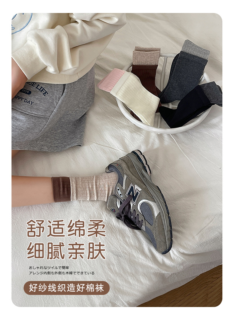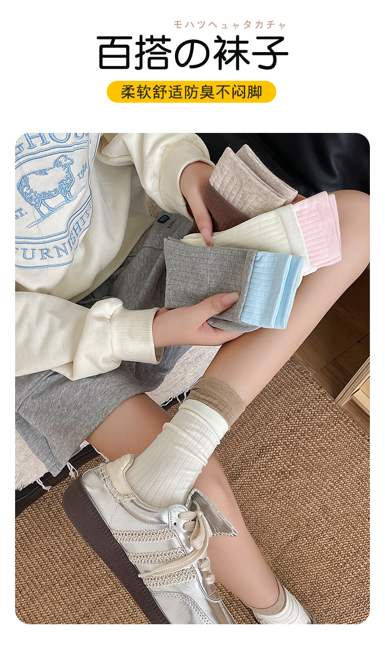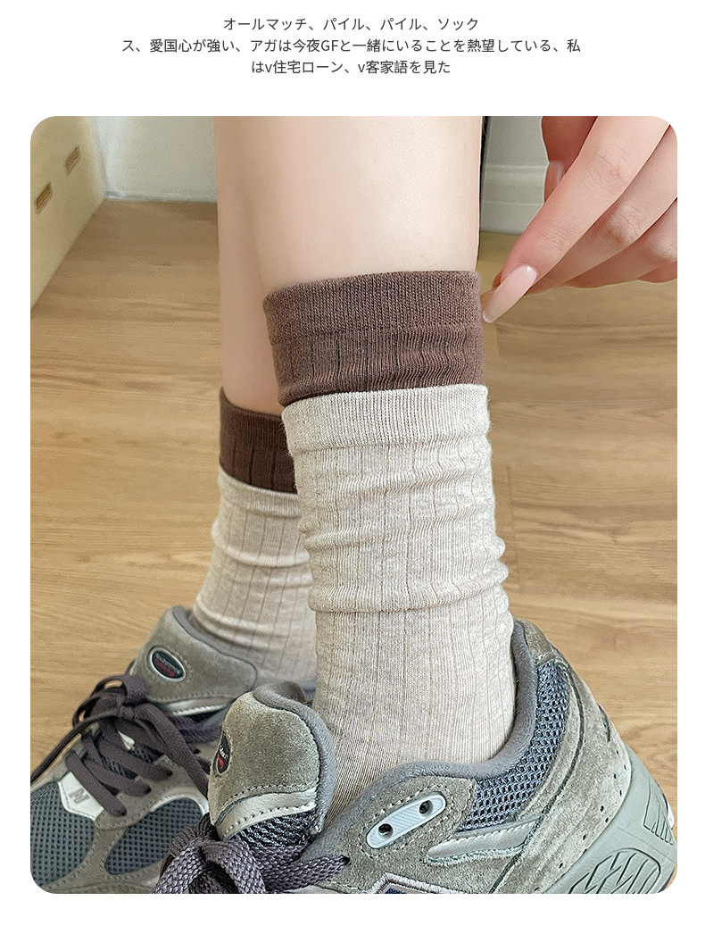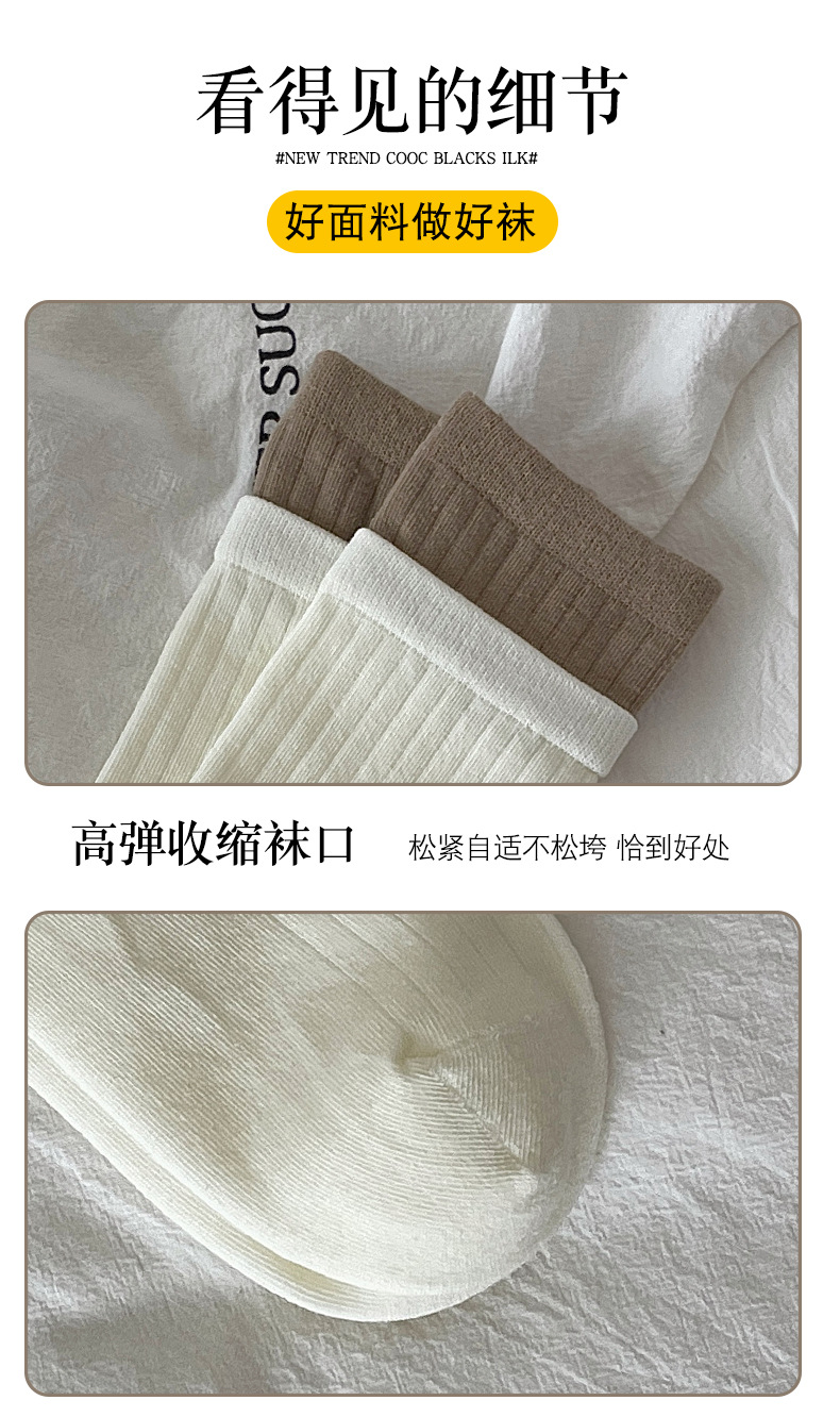 봄과 가을 더블 라커우 대비 컬러 올매치 코튼 스택 양말 여성용 미드 배럴 컬러 매칭 더블 양말 Instagram 패셔너블 스타킹