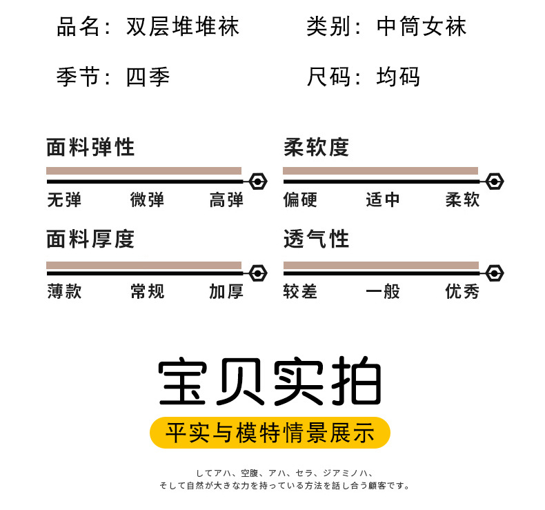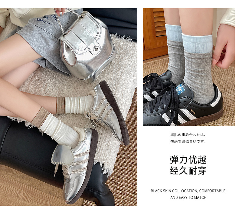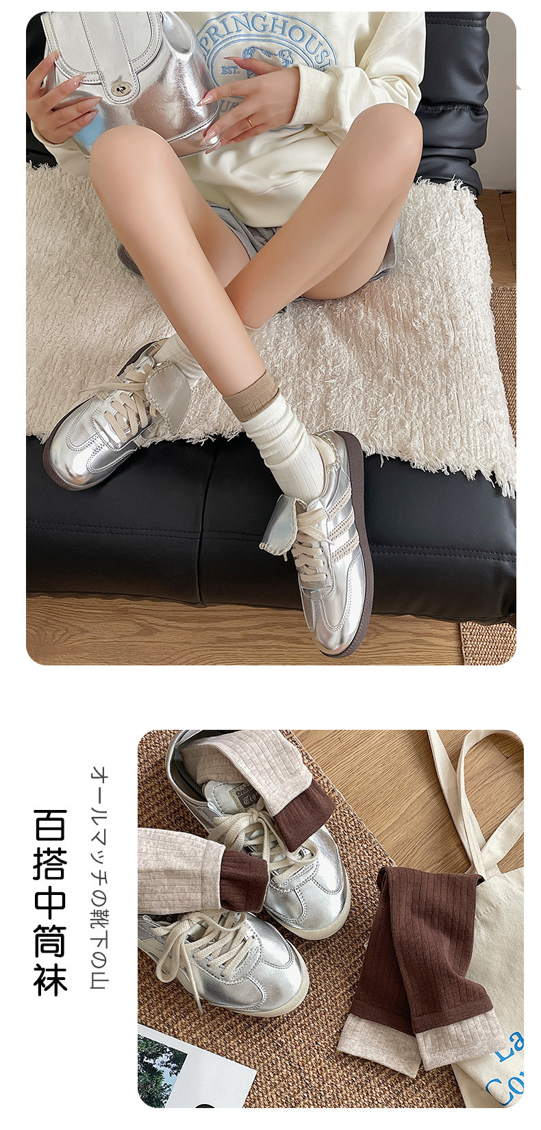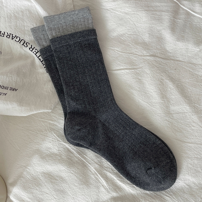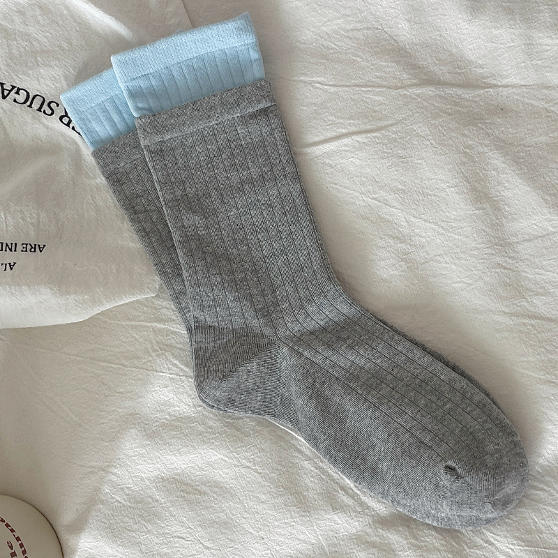 봄과 가을 더블 라커우 대비 컬러 올매치 코튼 스택 양말 여성용 미드 배럴 컬러 매칭 더블 양말 Instagram 패셔너블 스타킹
