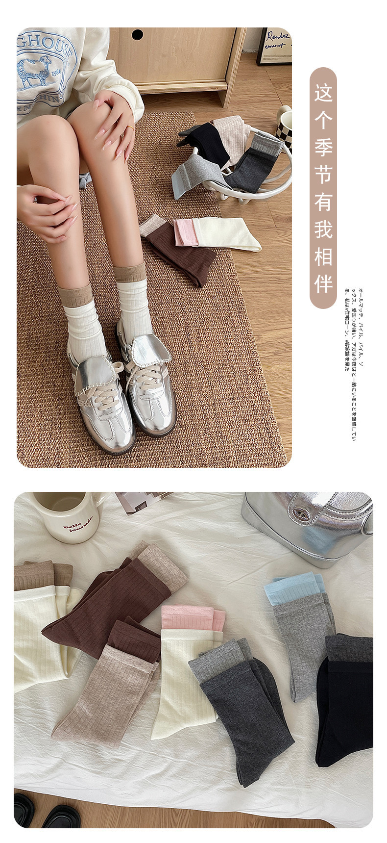 봄과 가을 더블 라커우 대비 컬러 올매치 코튼 스택 양말 여성용 미드 배럴 컬러 매칭 더블 양말 Instagram 패셔너블 스타킹스토어 가기
