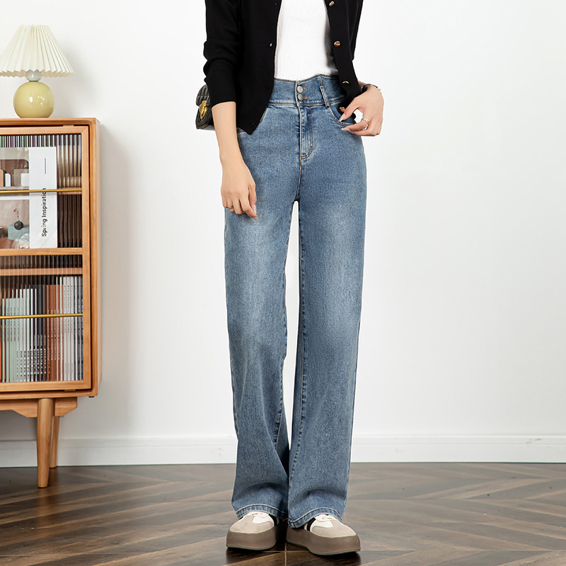 슬림 청바지 여성의 2024 가을과 겨울 재고 창조적 인 높은 허리 간단한 통근 한국어 버전 바닥 넓은 다리 바지 21131