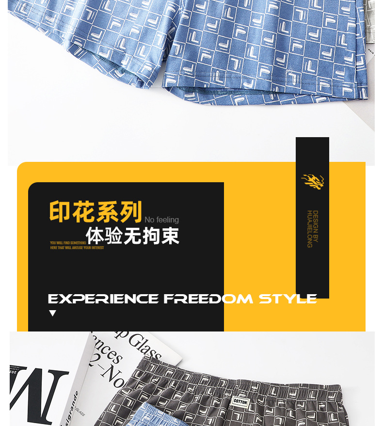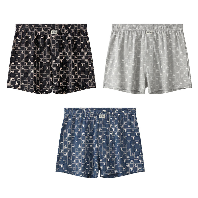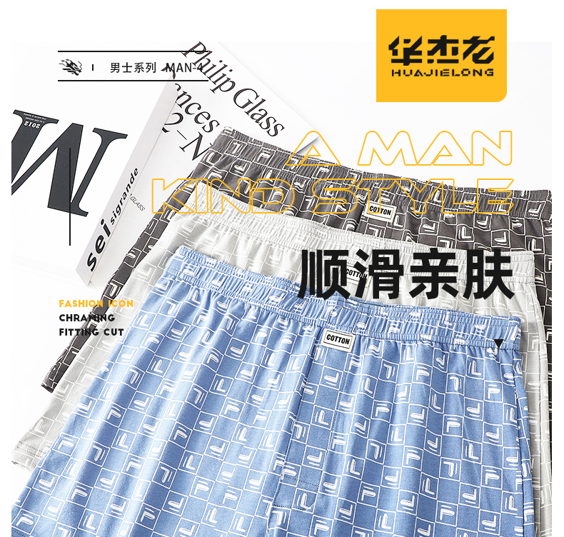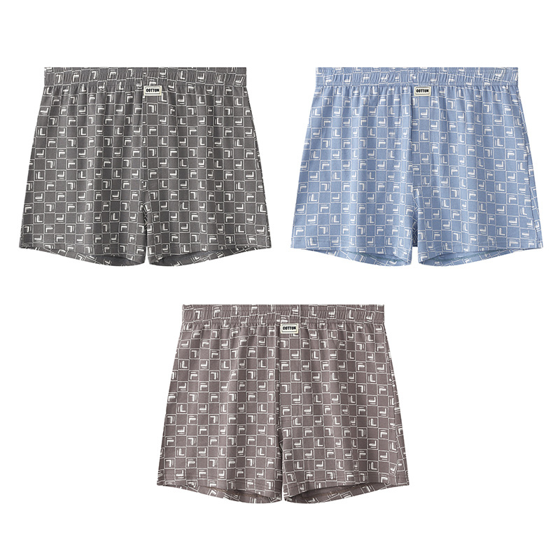 Hua Jielong 남성용 속옷 남성용 체크 무늬 복서 코튼 복서 느슨한 얇은 통기성 애로우 팬츠스토어 가기