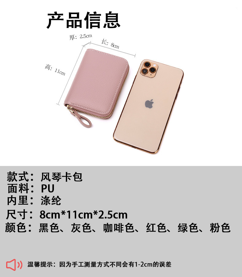 내마모성 도난 방지 브러시 오르간 카드 가방 레이디 카드 홀더 카드 가방 다기능 지퍼 작은 지갑 운전 면허증 가방
