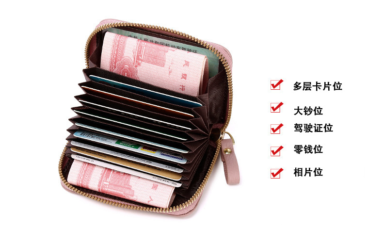내마모성 도난 방지 브러시 오르간 카드 가방 레이디 카드 홀더 카드 가방 다기능 지퍼 작은 지갑 운전 면허증 가방스토어 가기