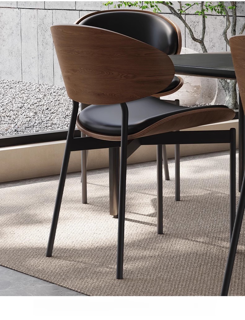 • [클래식 블랙] 호두색 두꺼운 구부러진 나무판 중세 스타일 이임스 다이닝 체어