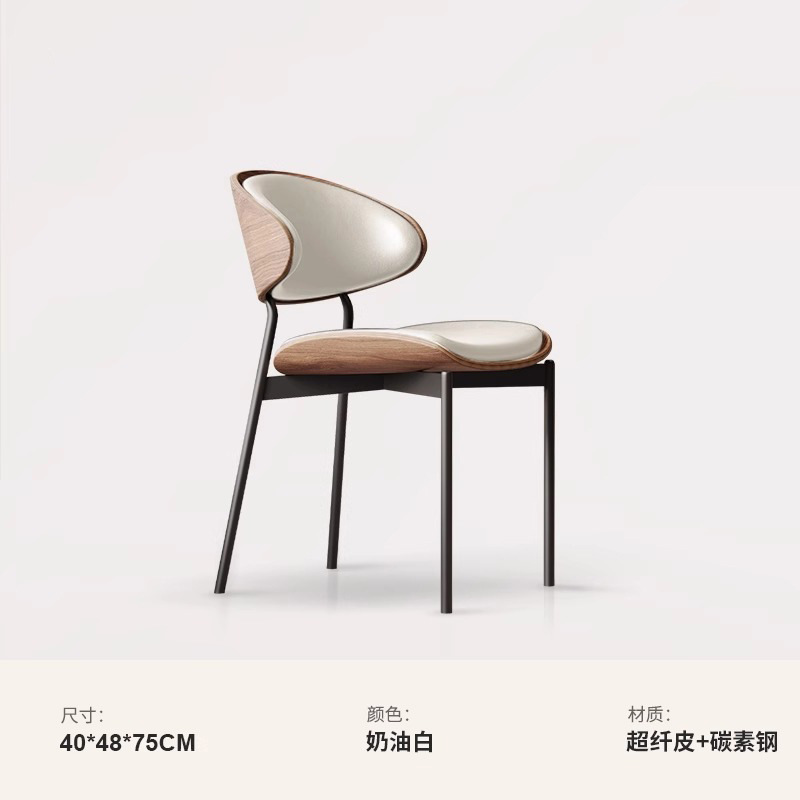 • [크림화이트] 호두색 두꺼운 구부러진 나무판 중세 스타일 이임스 다이닝 체어