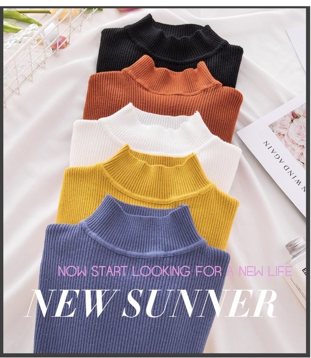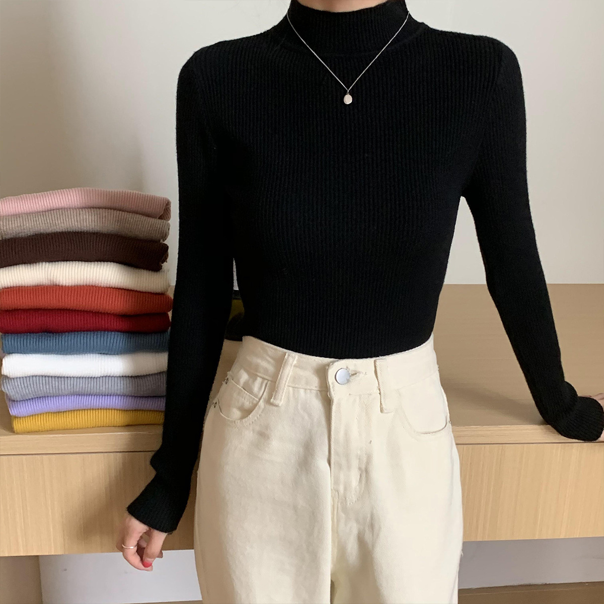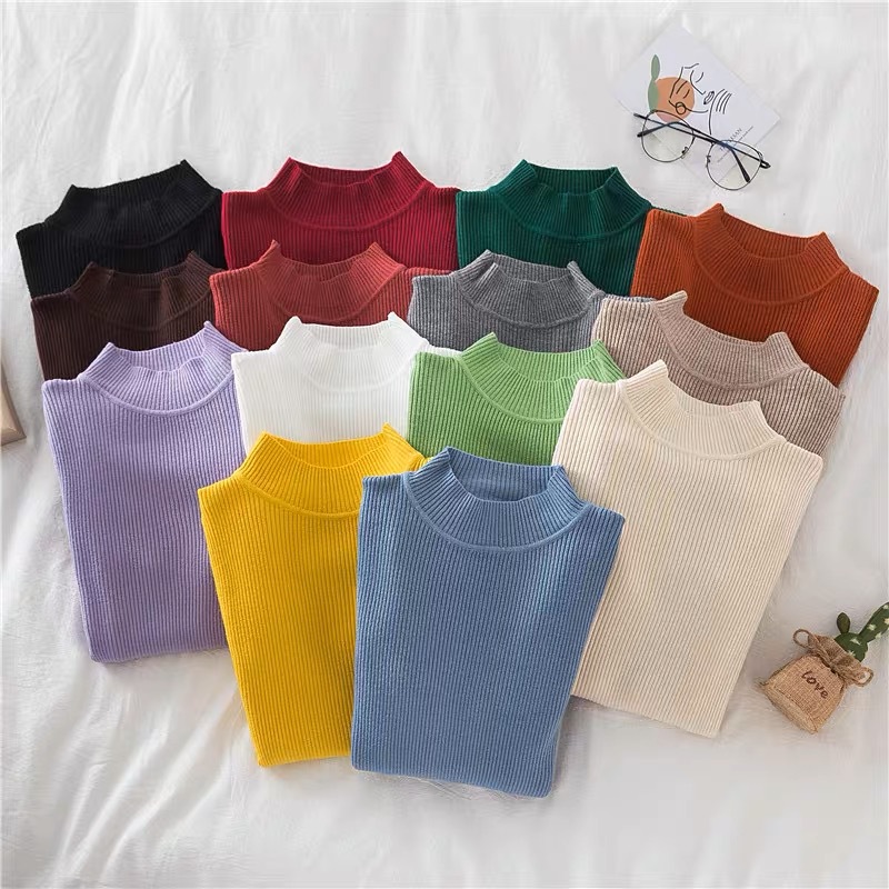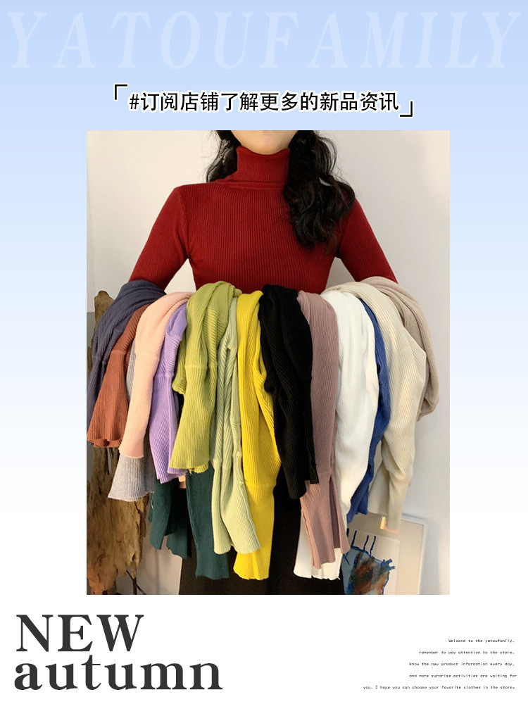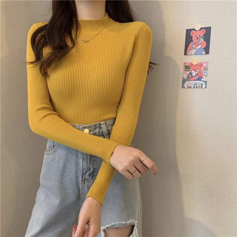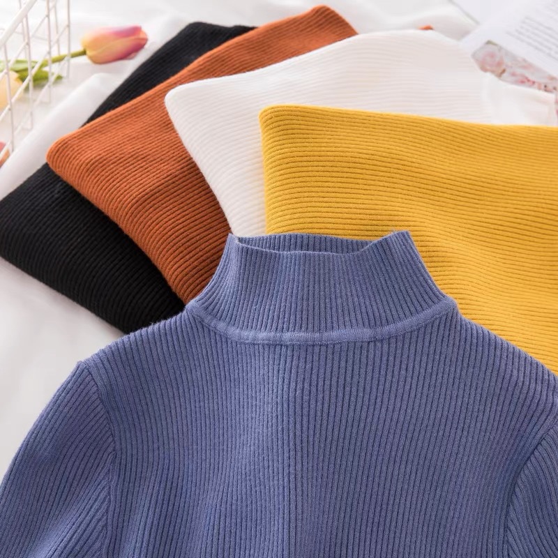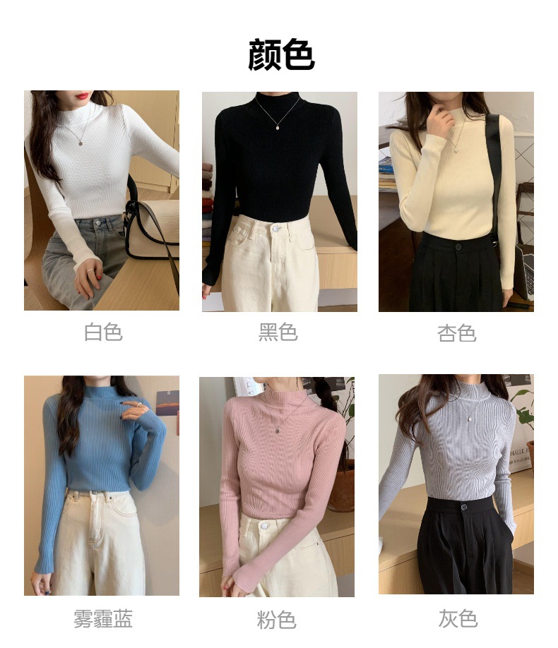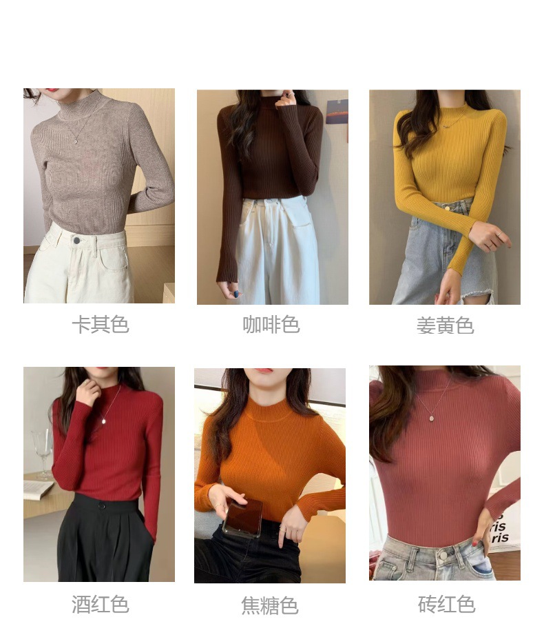 도매 단색 세미 하이 칼라 바닥 셔츠 여성의 2024 가을과 겨울 다재다능한 학생 슬림 하이 칼라 스웨터 여성스토어 가기