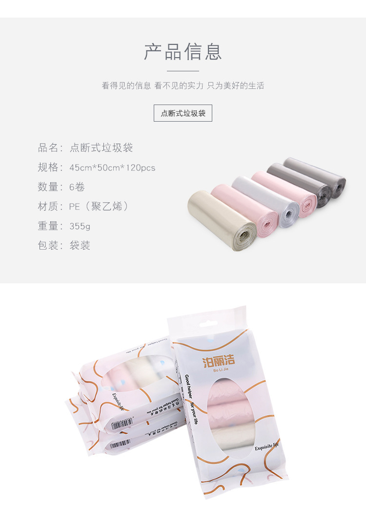 6 롤 두껍게 일반 쓰레기 봉투 새로운 소재 컬러 주방 욕실 가정용 비닐 봉투 큰 45*55스토어 가기