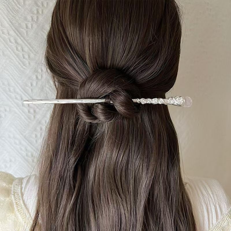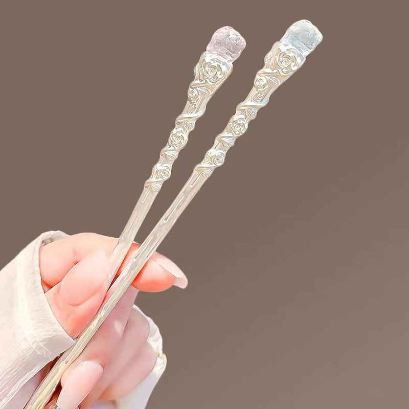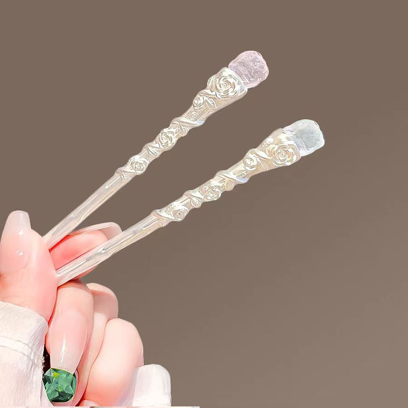 새로운 중국 스타일 로즈 크리스탈 셉터 헤어핀 여성용 라이트 럭셔리 하이 엔드 센스 마이크로 상감 헤어 헤어핀 국가 스타일 독특한 절묘한 헤어 액세서리