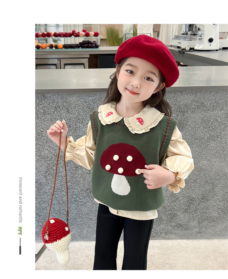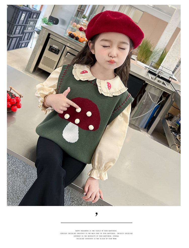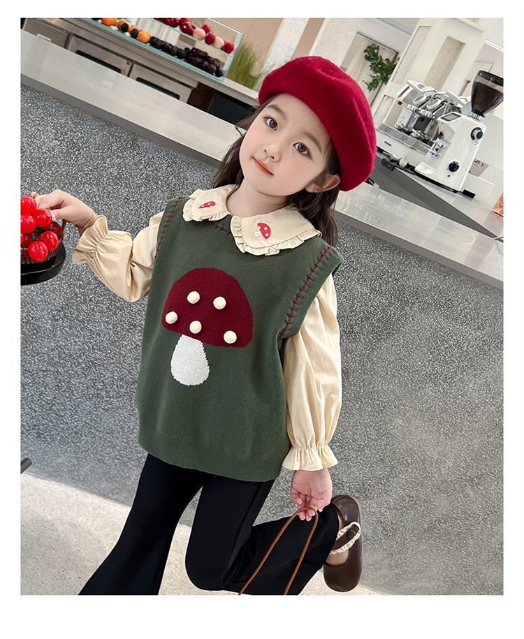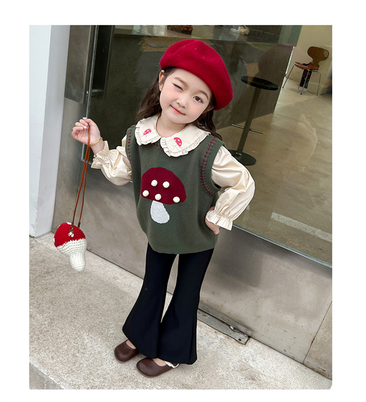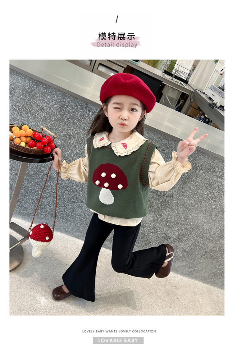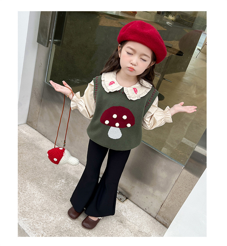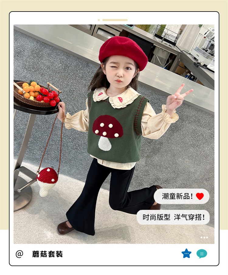 소녀 세트 봄과 가을 2024 새로운 패션 어린 소녀 버섯 스웨터 셔츠 세트 어린이 투피스 세트스토어 가기