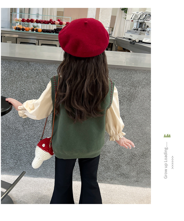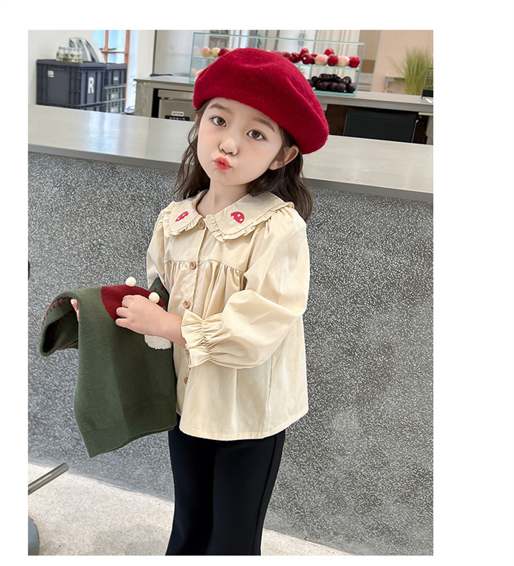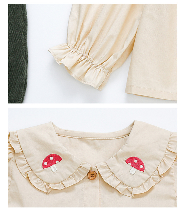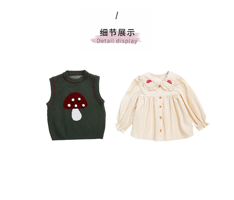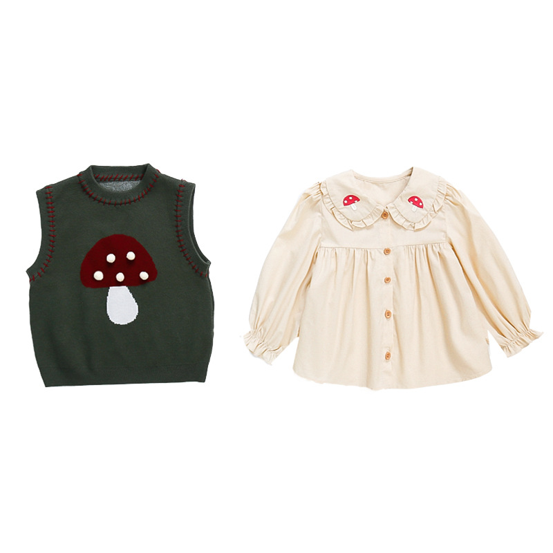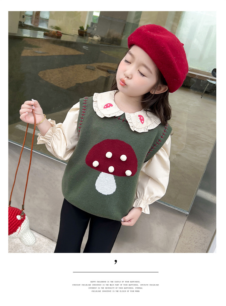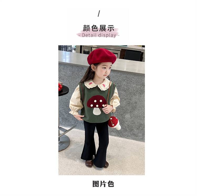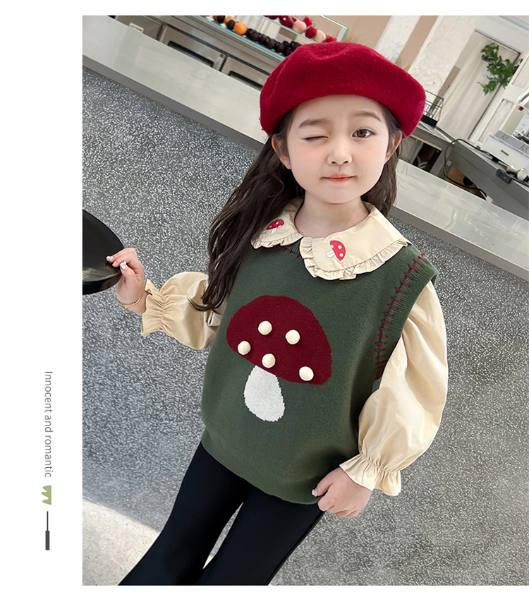 소녀 세트 봄과 가을 2024 새로운 패션 어린 소녀 버섯 스웨터 셔츠 세트 어린이 투피스 세트스토어 가기