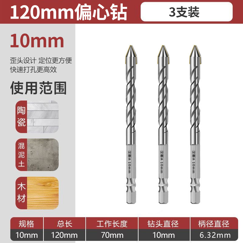 한스 비뚤어진 머리 편심 드릴 세라믹 건조 유리 대리석 타일 펀치 드릴 손 드릴 특수 벽돌스토어 가기