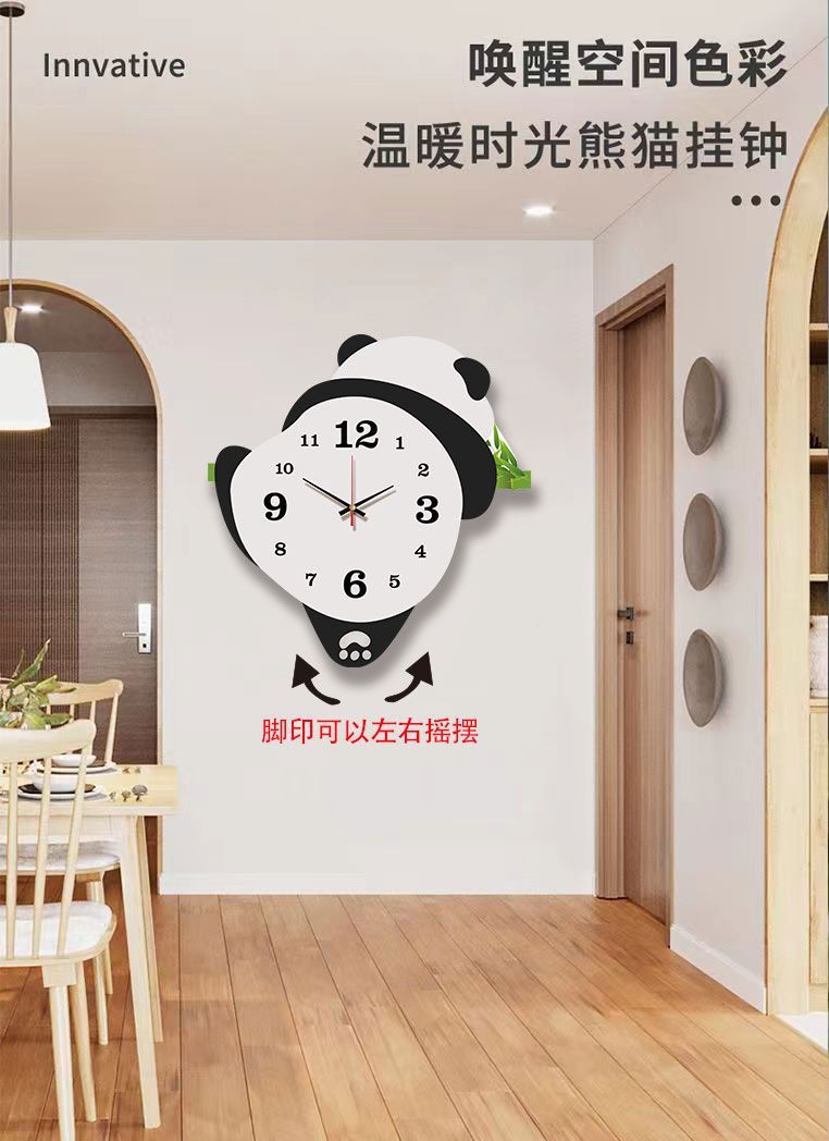 새로운 팬더 벽 시계 거실 시계 벽 스윙 창조적 인 석영 시계 침실 펀치 무료 벽 시계 음소거 시계