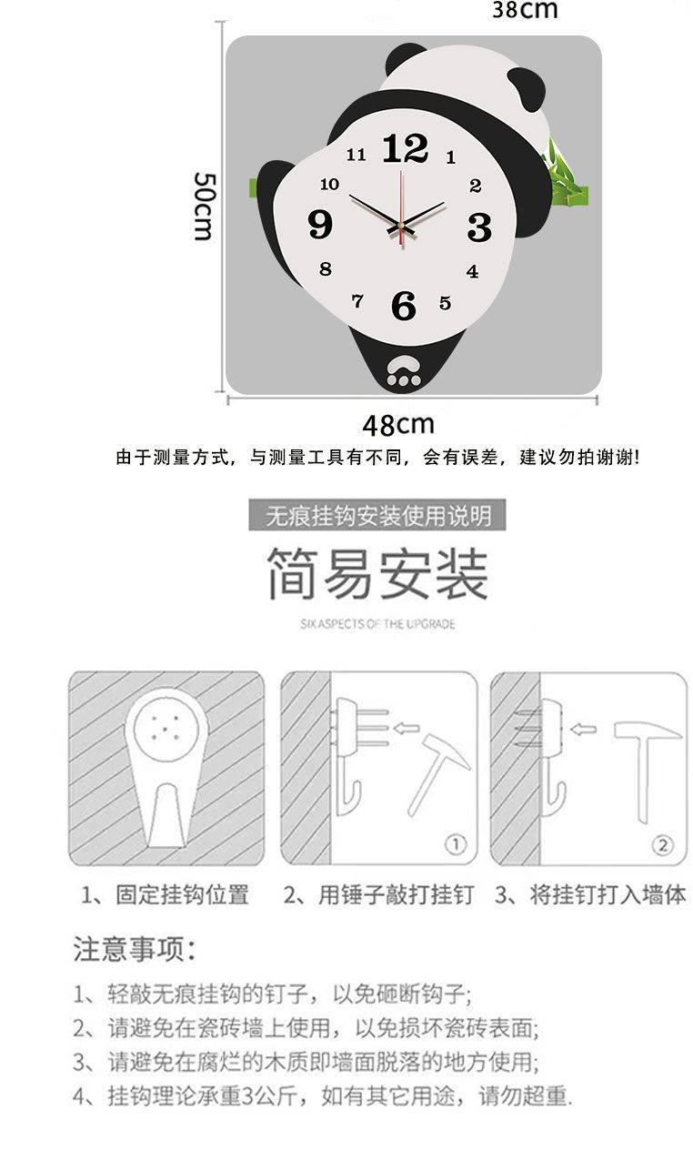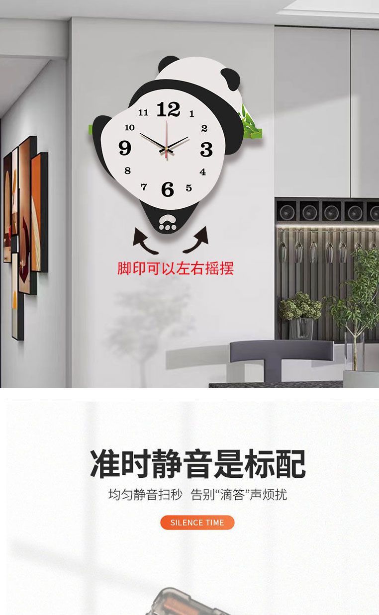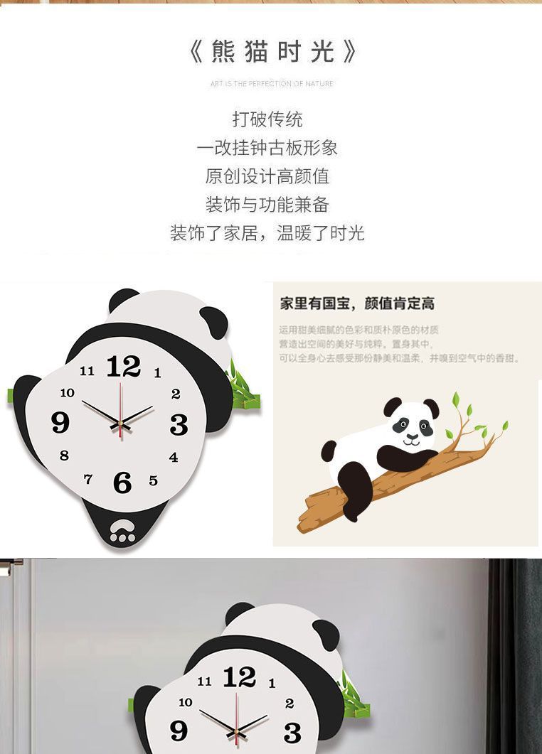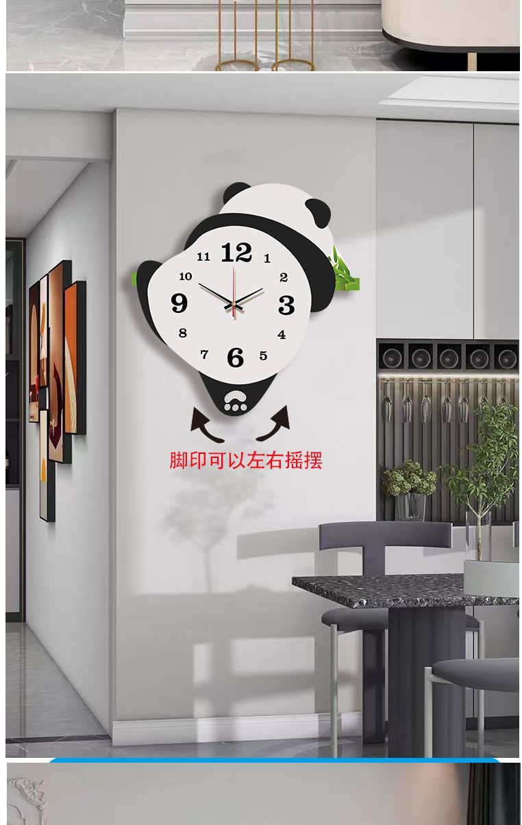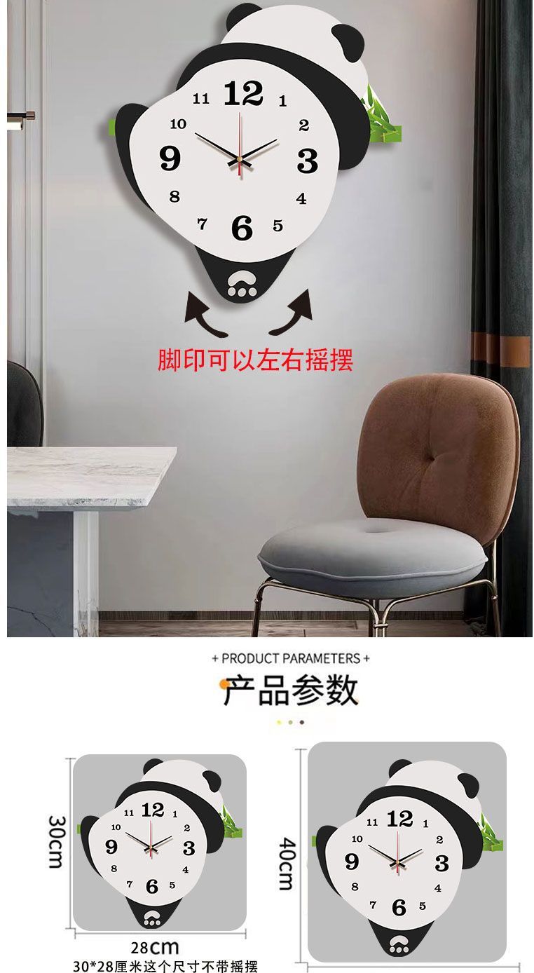 새로운 팬더 벽 시계 거실 시계 벽 스윙 창조적 인 석영 시계 침실 펀치 무료 벽 시계 음소거 시계스토어 가기