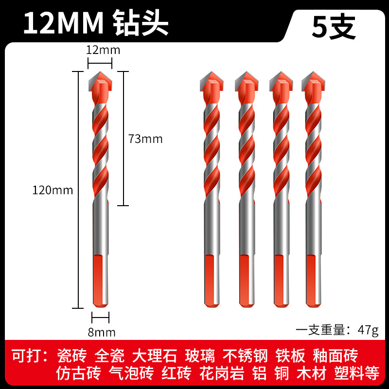타일 드릴 비트 콘크리트 구멍 드릴링 오버로드 드릴 합금 삼각형 드릴 6mm 유리 시멘트 Daquan 핸드 드릴