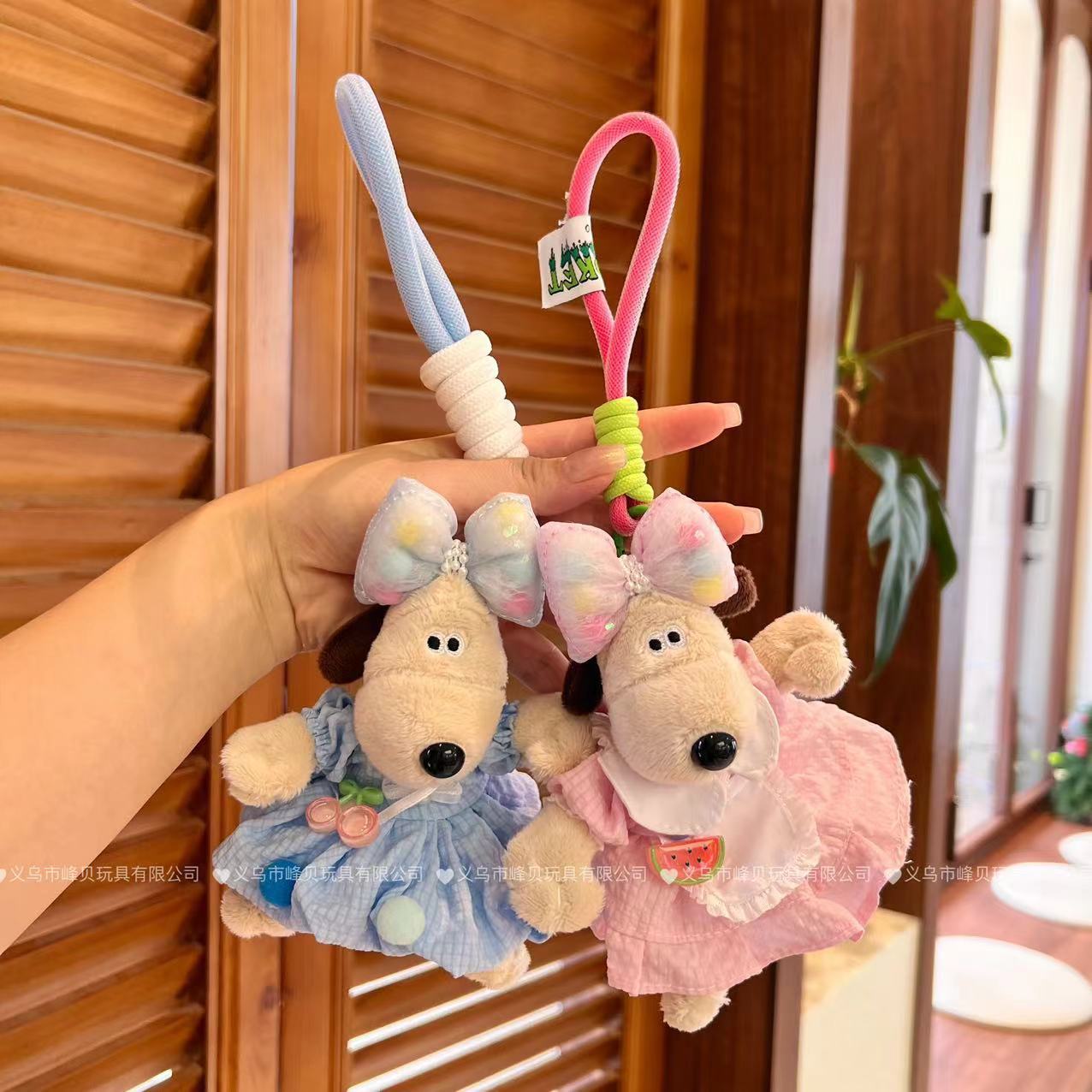클램핑 개 보라색 격자 무늬 바지 파우더 격자 무늬 딸기 옷깃 원피스 인형 휴대 전화 클립 개 열쇠스토어 가기