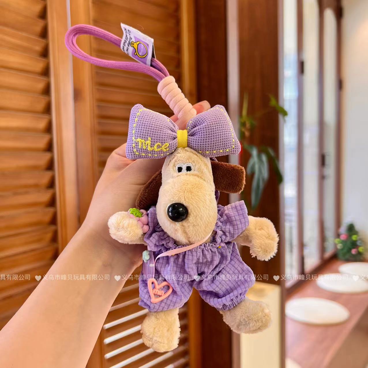 클램핑 개 보라색 격자 무늬 바지 파우더 격자 무늬 딸기 옷깃 원피스 인형 휴대 전화 클립 개 열쇠