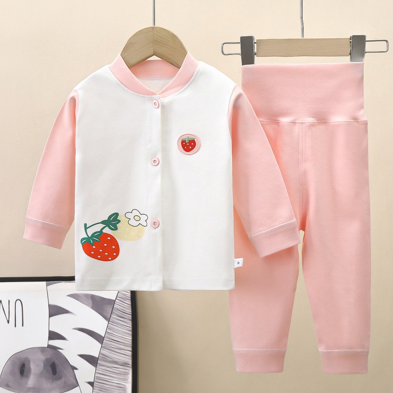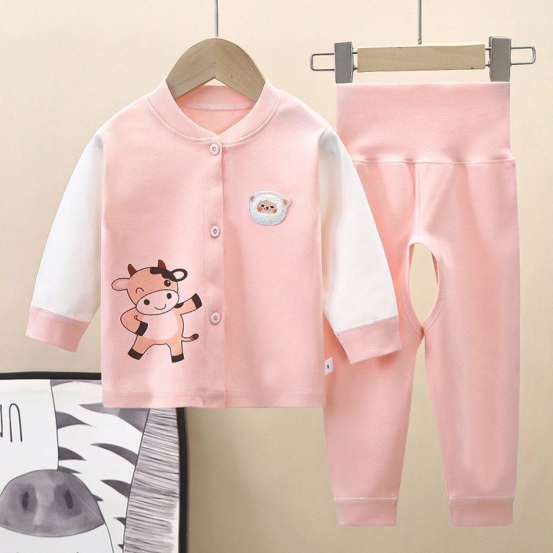어린이 면화 속옷 세트 유아 및 어린 아이들의 집 옷 용 허리 배꼽 보호자 아기의 가을 옷과 바지 잠옷스토어 가기