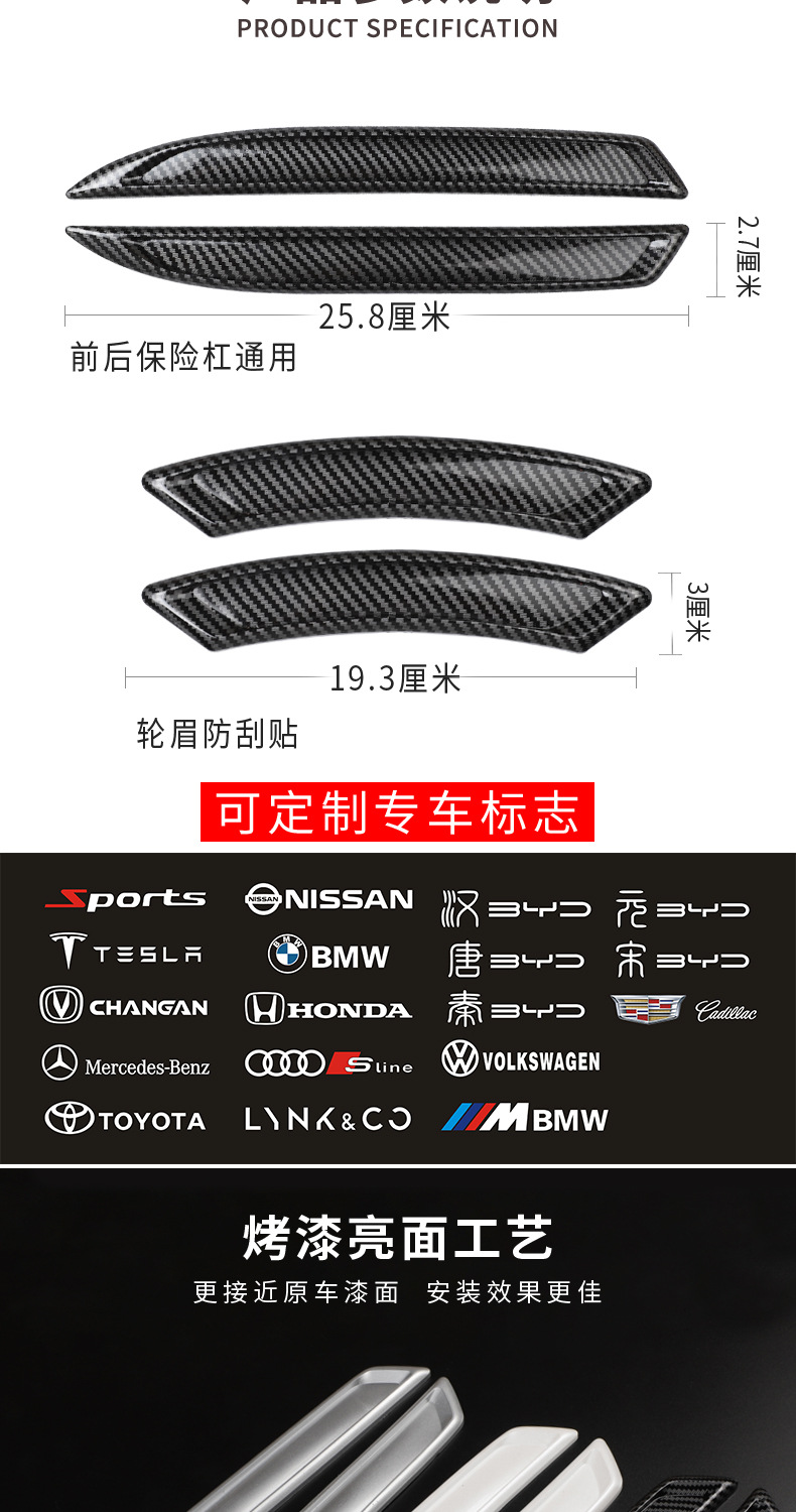 페인트 자동차 휠 눈썹 안티 스크래치 장식 펜더 안티 스크래치 탄소 섬유 패턴 전면 및 후면 범퍼 충돌 방지 스트립 수정 범용