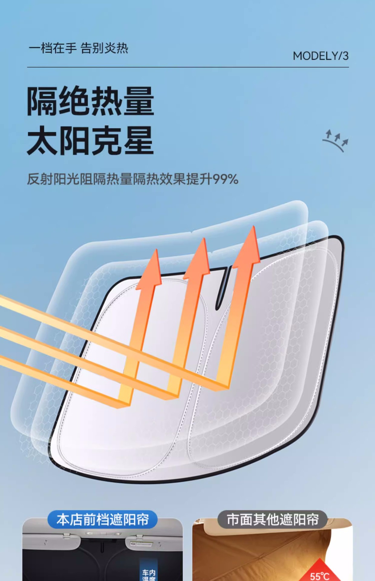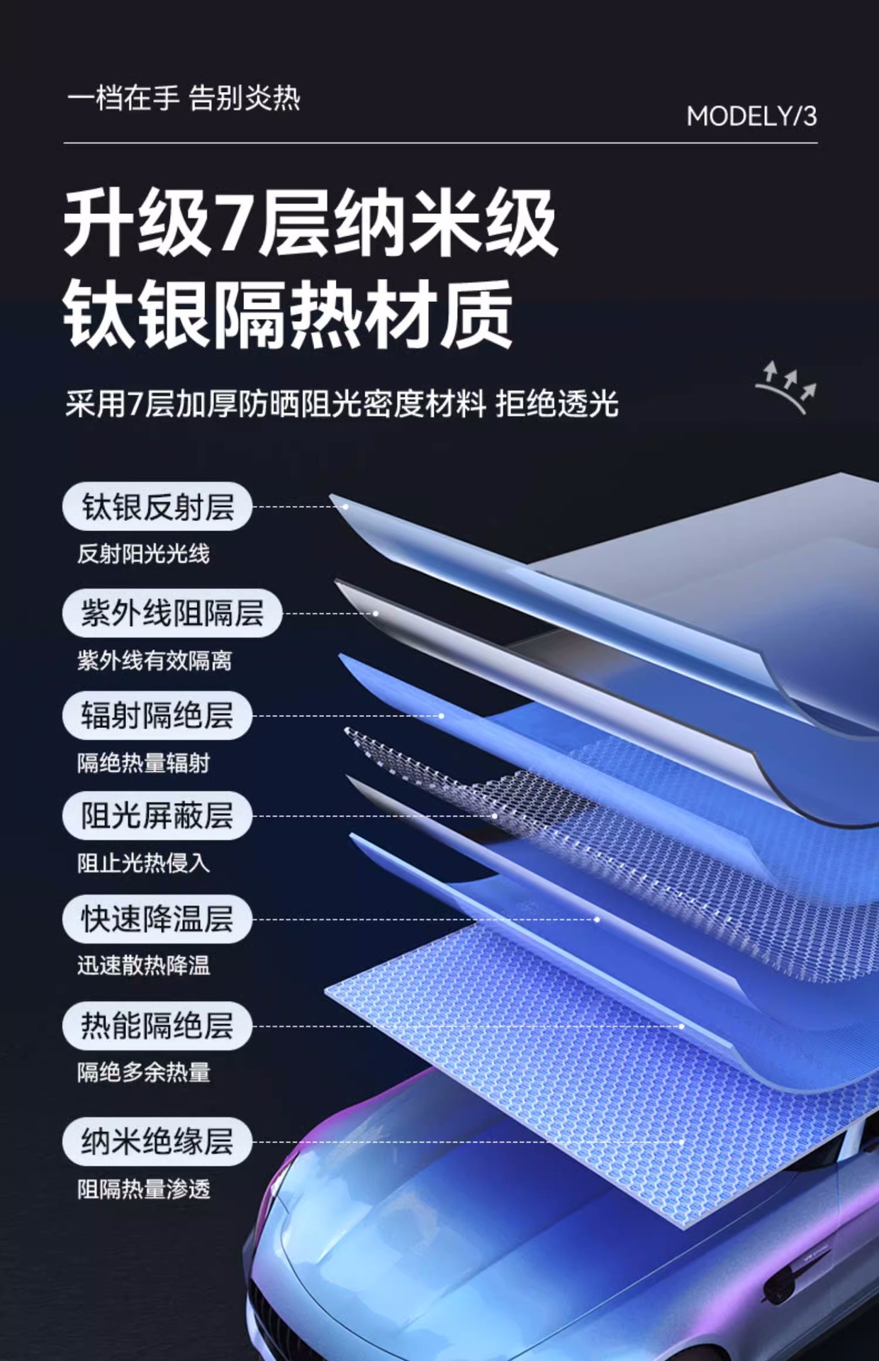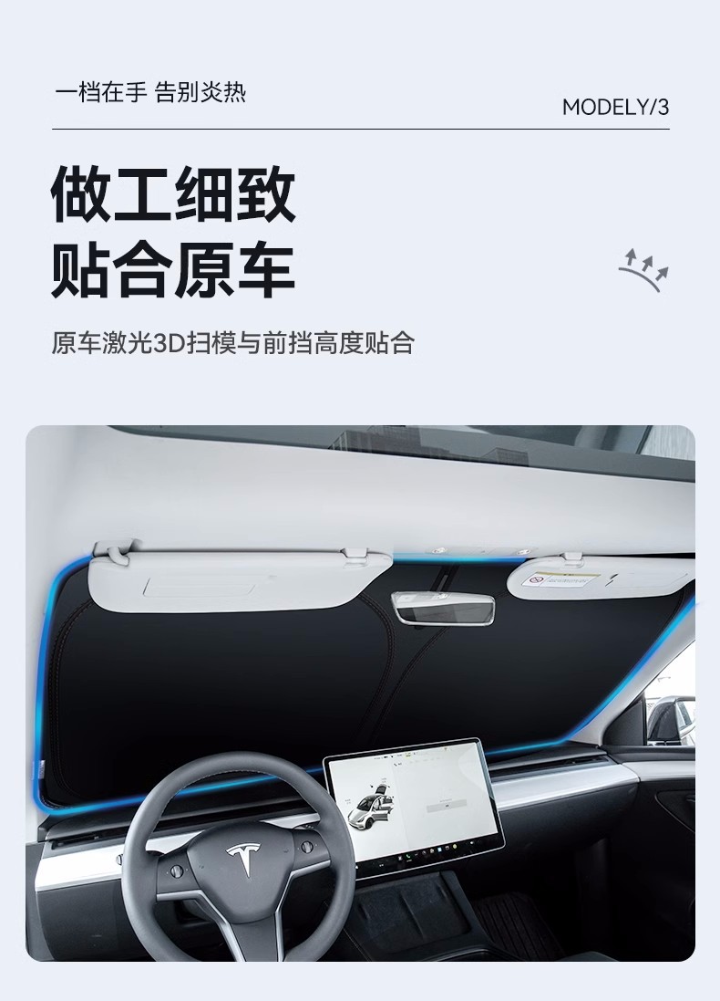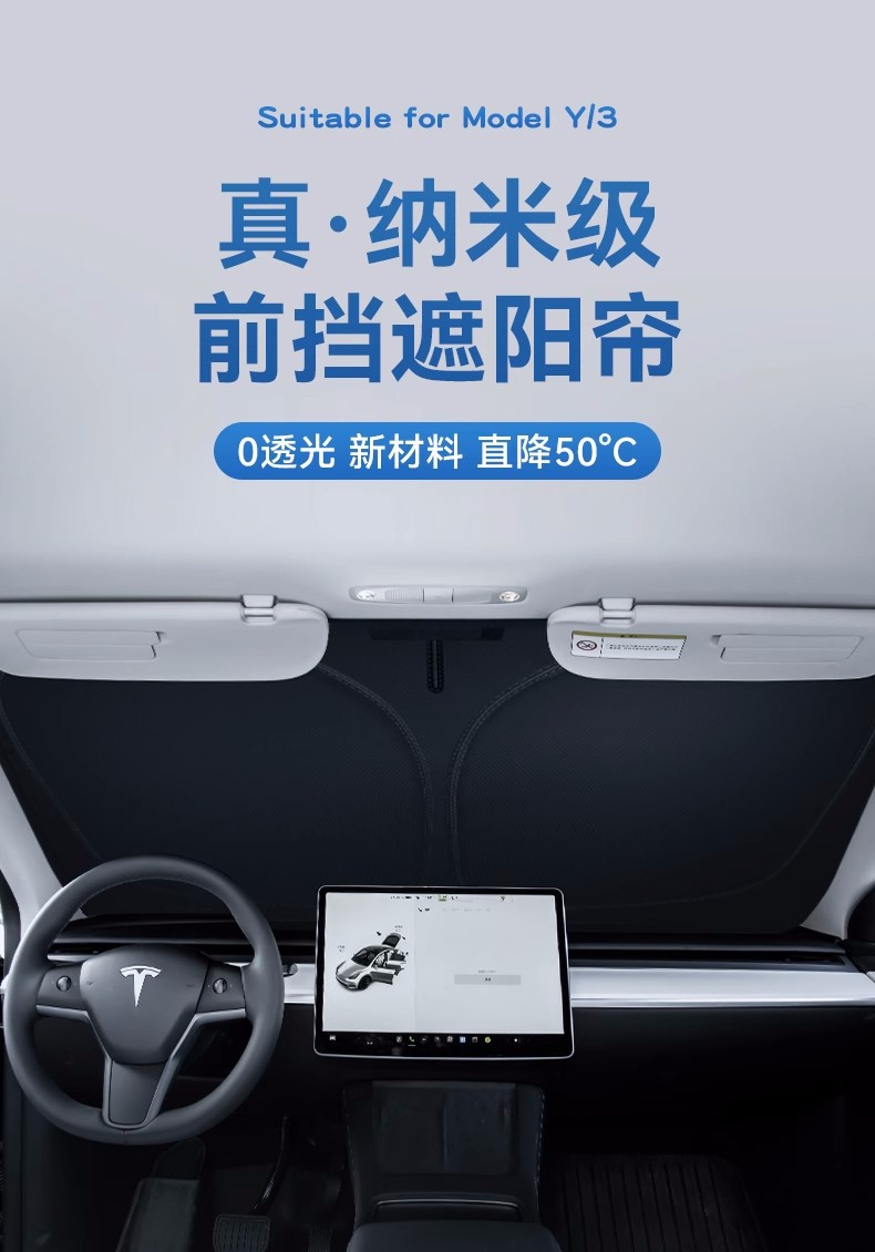 테슬라 사이버트럭 프론트 윈드쉴드용 이중 레이어 불투명 자외선 차단 차양막, 이중 레이어 자외선 차단