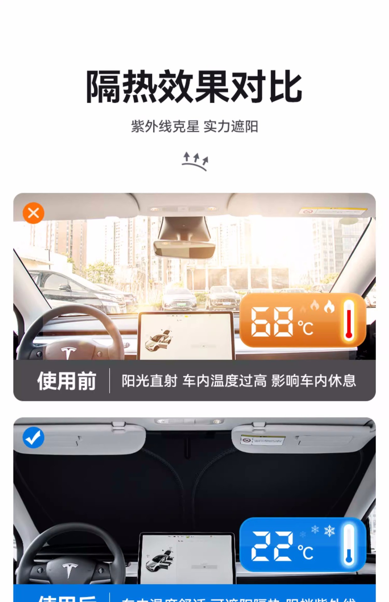 테슬라 사이버트럭 프론트 윈드쉴드용 이중 레이어 불투명 자외선 차단 차양막, 이중 레이어 자외선 차단스토어 가기