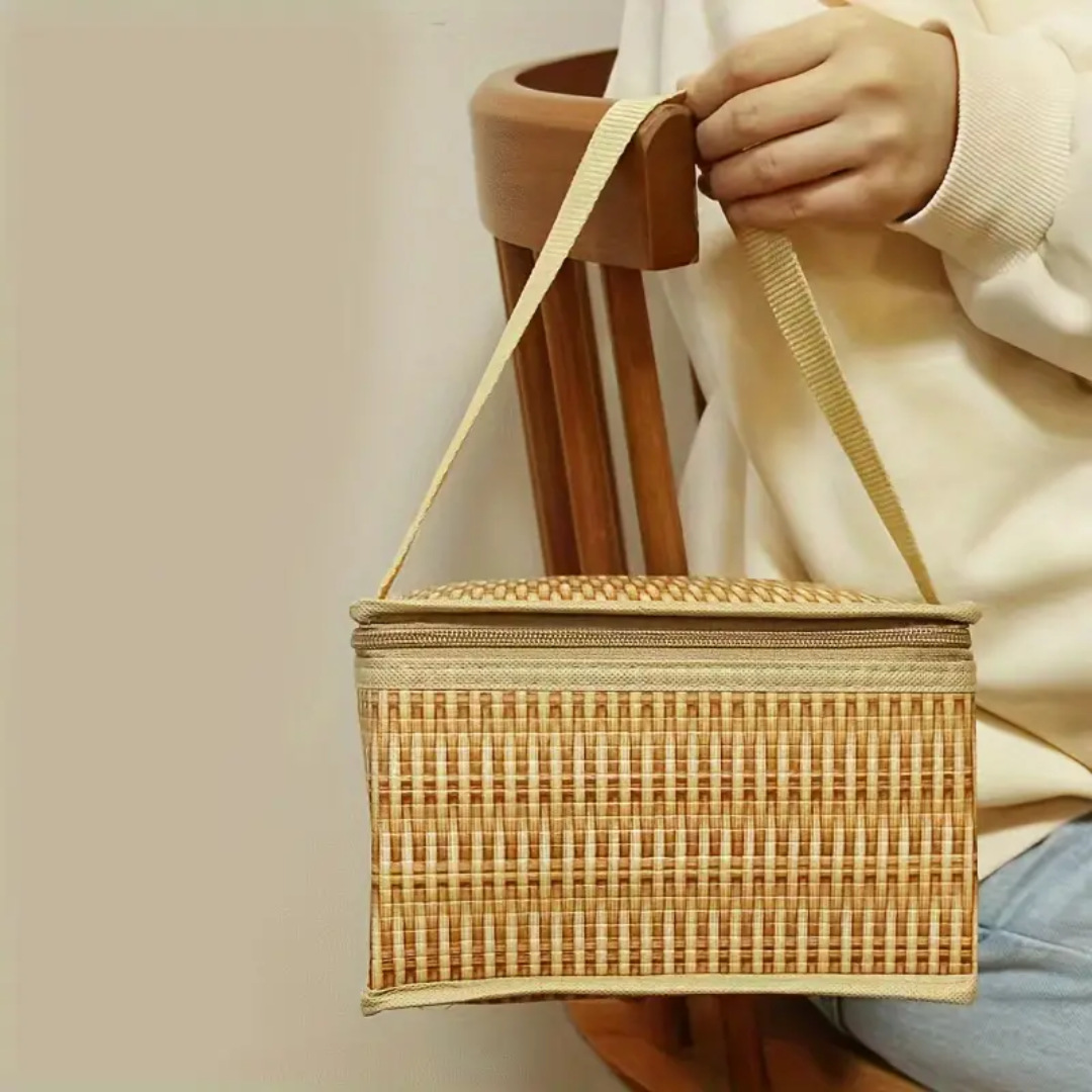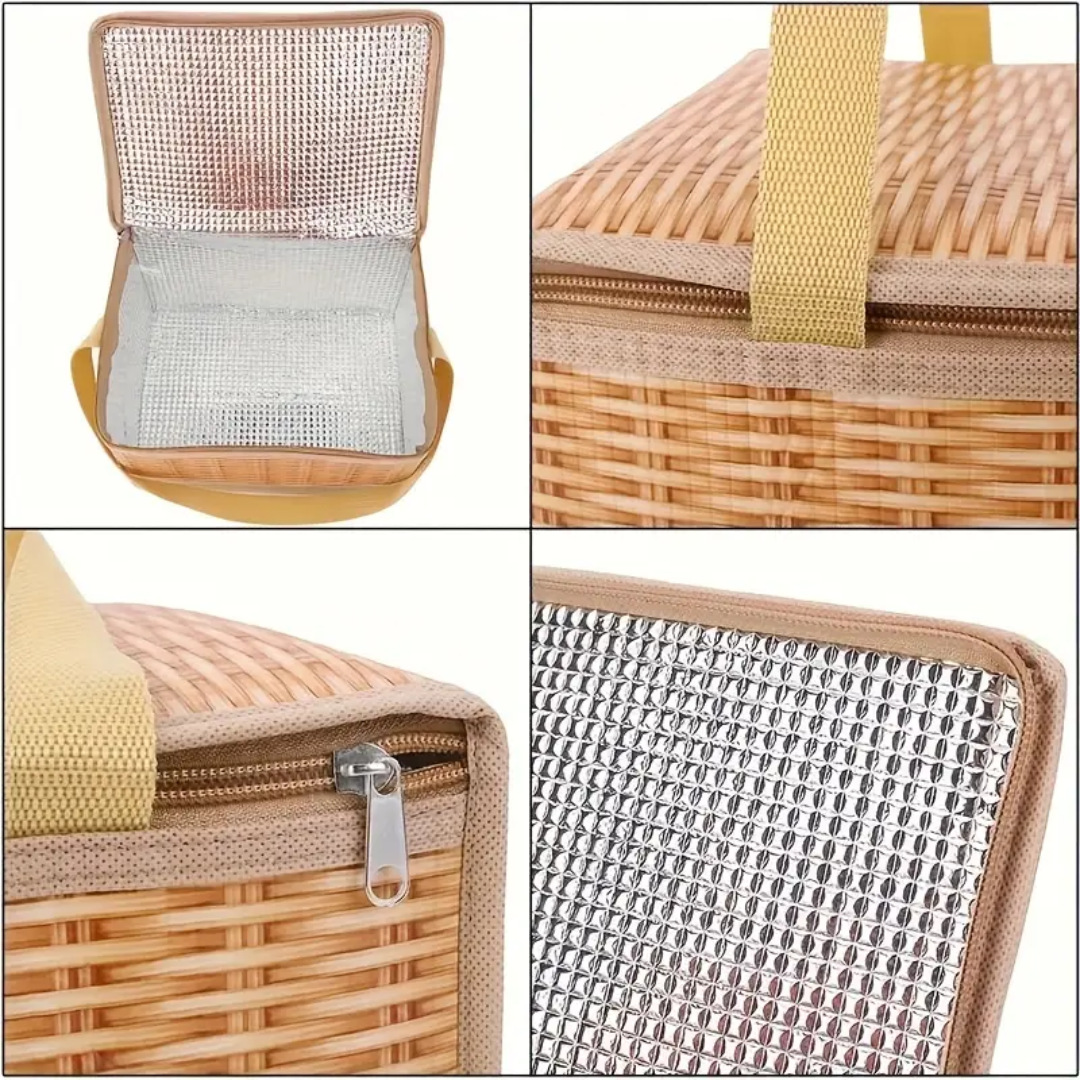 새로운 두꺼운 모조 등나무 절연 가방 도시락 가방 휴대용 점심 가방 방수 대용량 휴대용 보관 가방스토어 가기