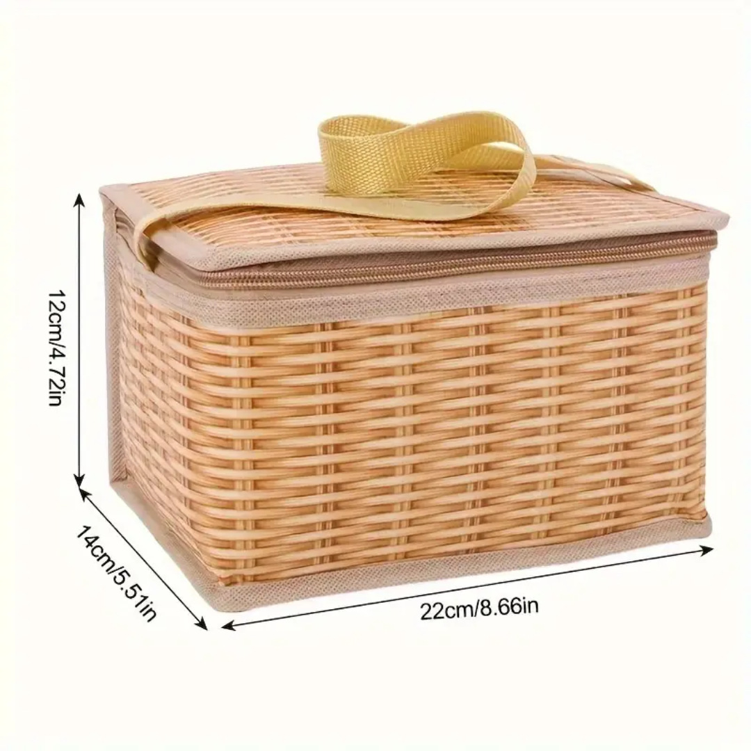 새로운 두꺼운 모조 등나무 절연 가방 도시락 가방 휴대용 점심 가방 방수 대용량 휴대용 보관 가방