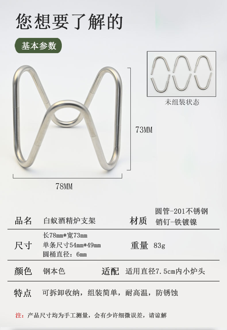 야외 알코올 스토브 브래킷 스테인레스 스틸 이동식 브래킷 휴대용 크리에이티브 스토브 스테인레스 스틸 브래킷 캠핑 액세서리