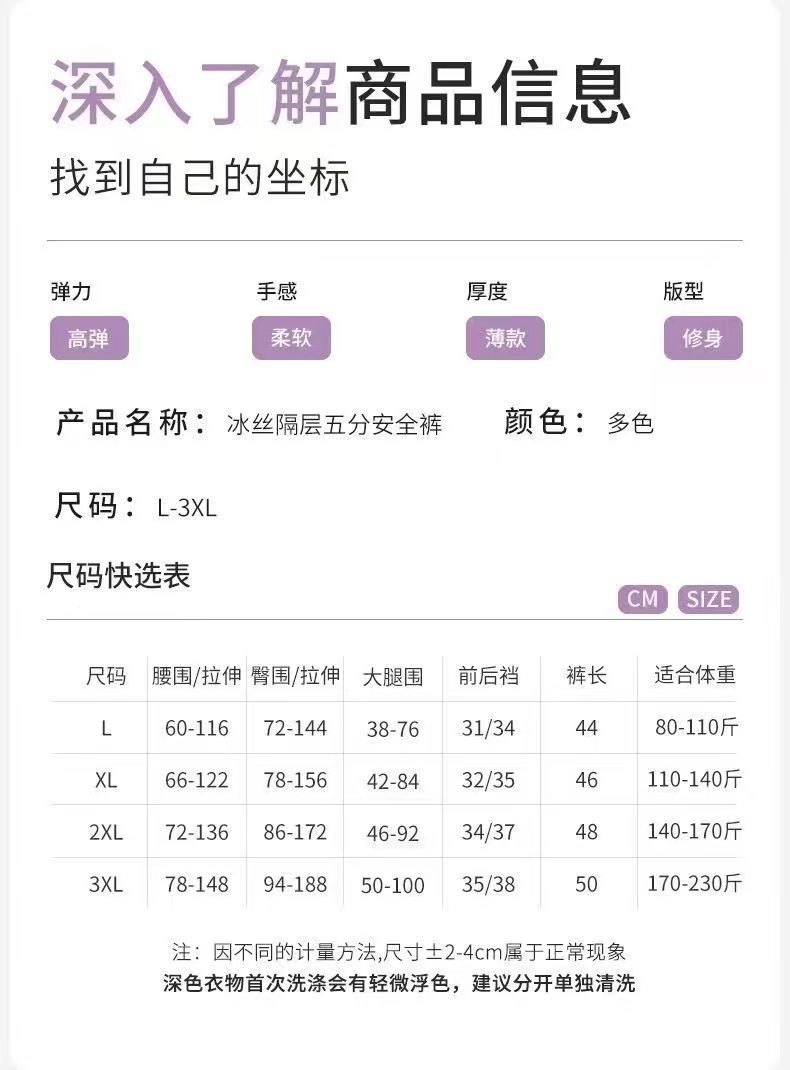 얼음 실크 구획 차폐 삼각형 안전 바지 플러스 사이즈 200kg 5 점 컬링 여름 바닥 조명 여성스토어 가기