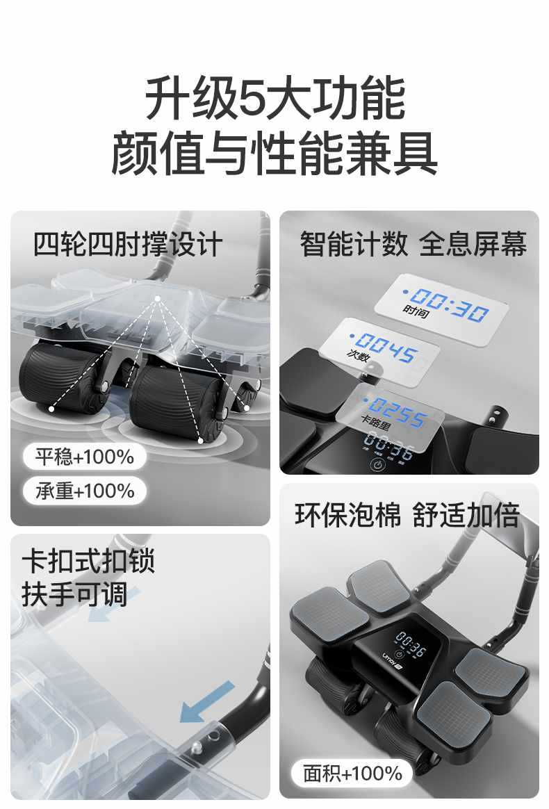 • [복합모델-그레이] 4륜 4팔꿈치 복부 휠 + 프로페셔널 피트니스 매트 + 윗몸 일으키기%