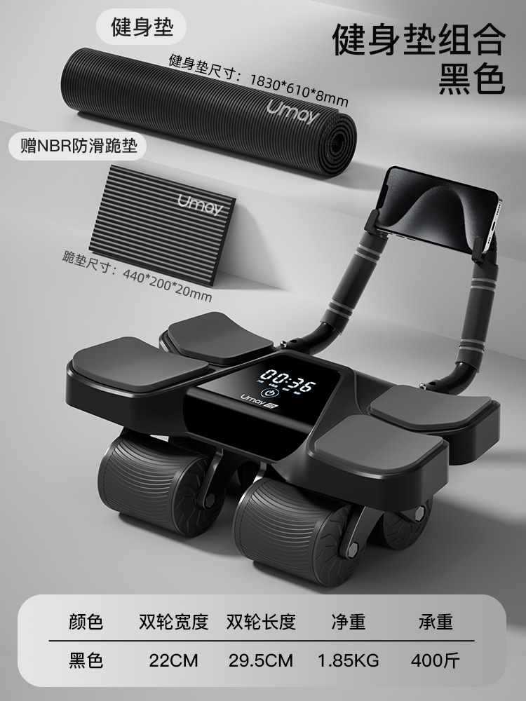 • [복합모델-블랙] 4륜 4팔꿈치 복부 휠 + 프로페셔널 피트니스 매트 + 푸쉬업 지원%