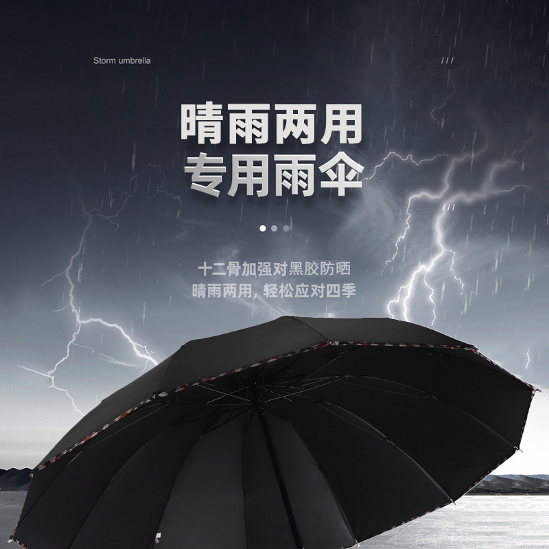 초대형 우산 두꺼워진 대형 비즈니스 블랙 글로시 양용 자외선 차단 접이식 우산 2-3인용 남성용 태양 우산