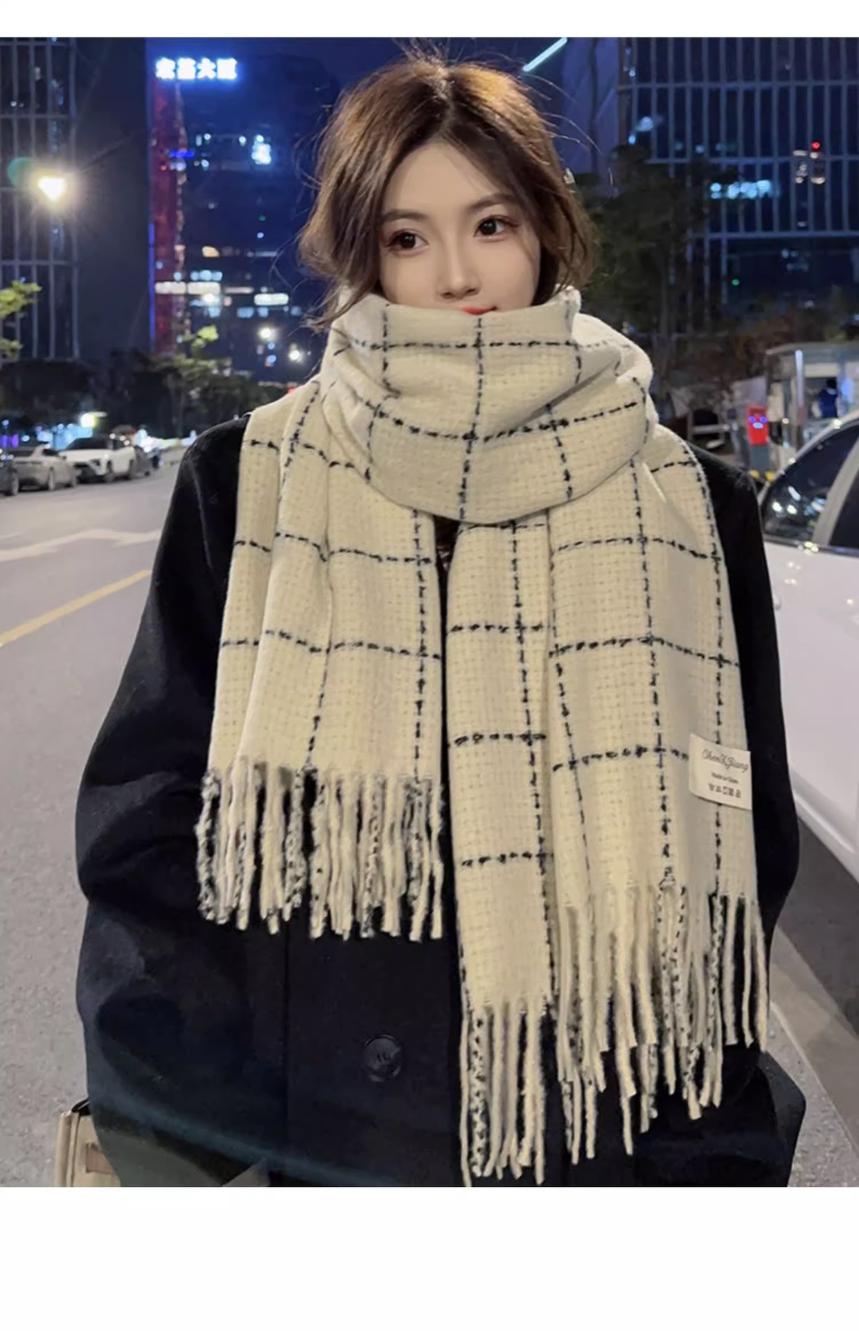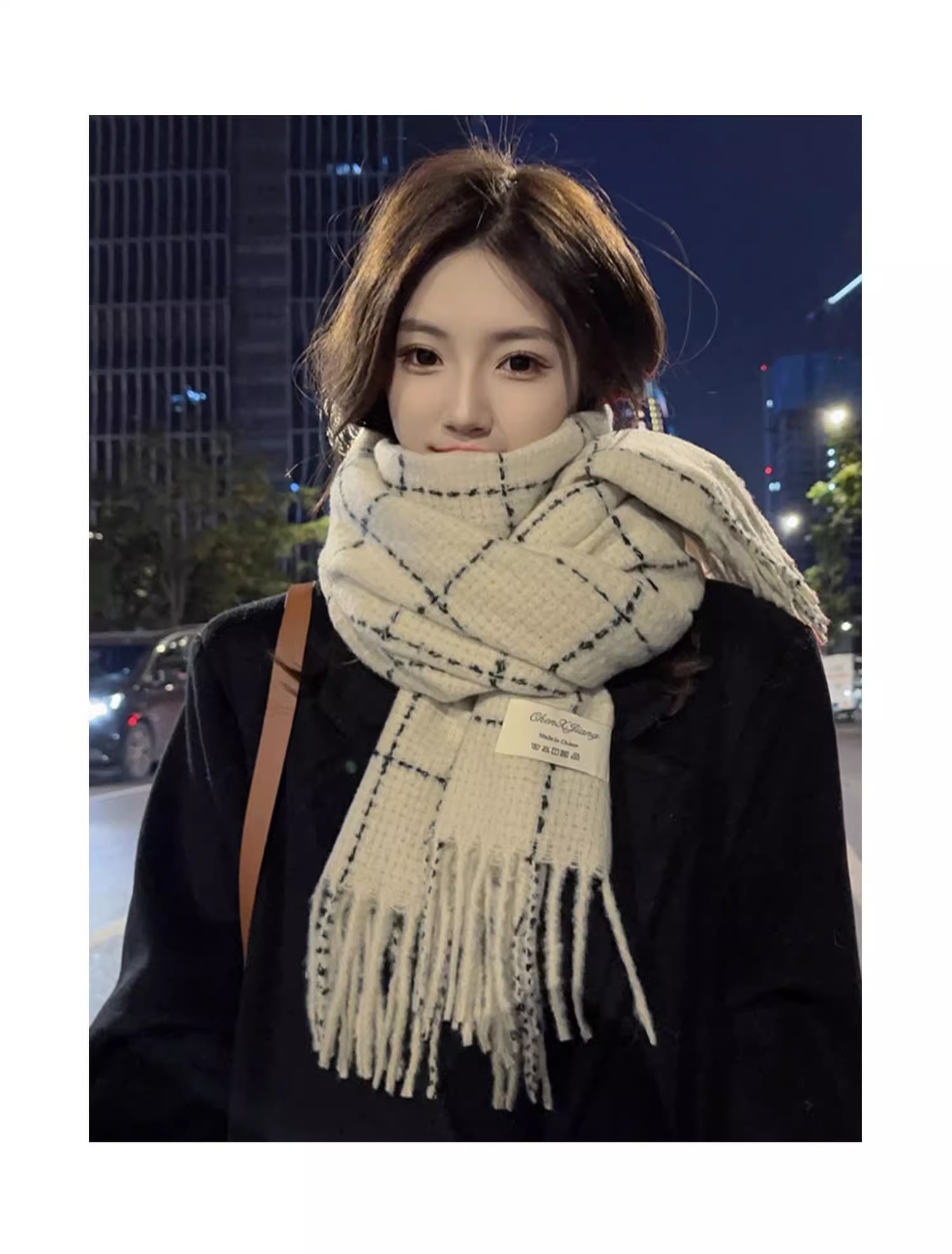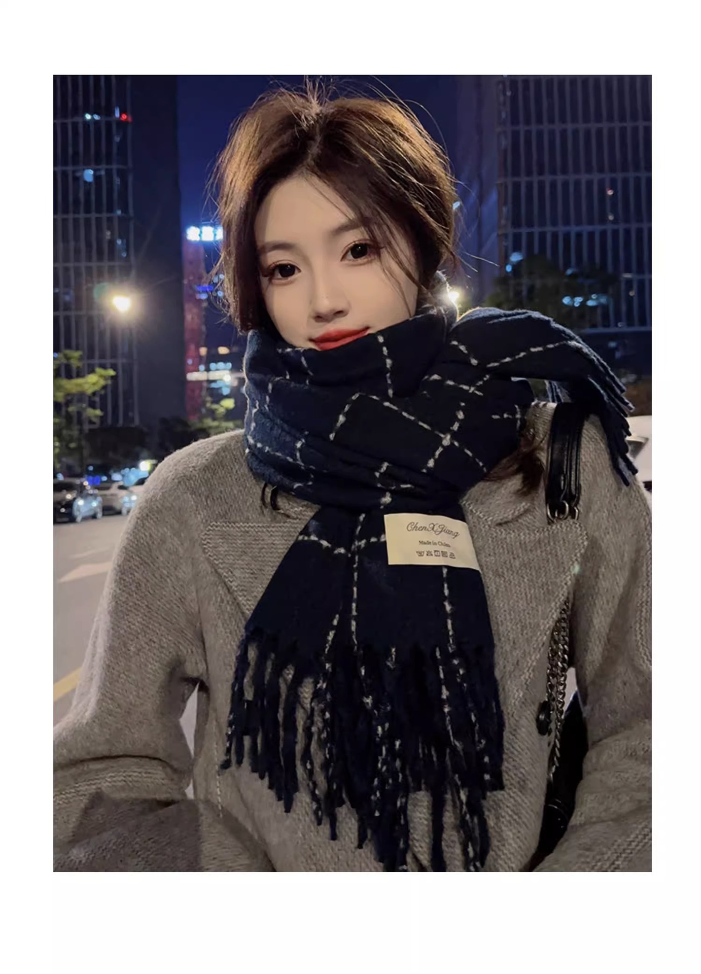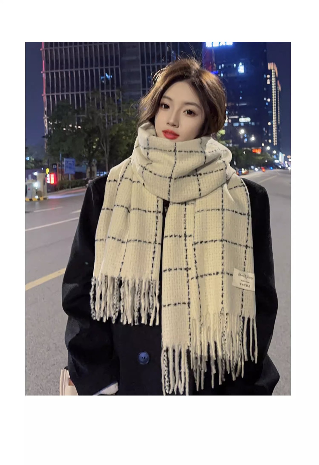 2024 새로운 스타일 스카프 여자 겨울 한국 스타일 올매치 인터넷 연예인 고급 격자 목도리가 학생들을 위해 두꺼운 따뜻한 목