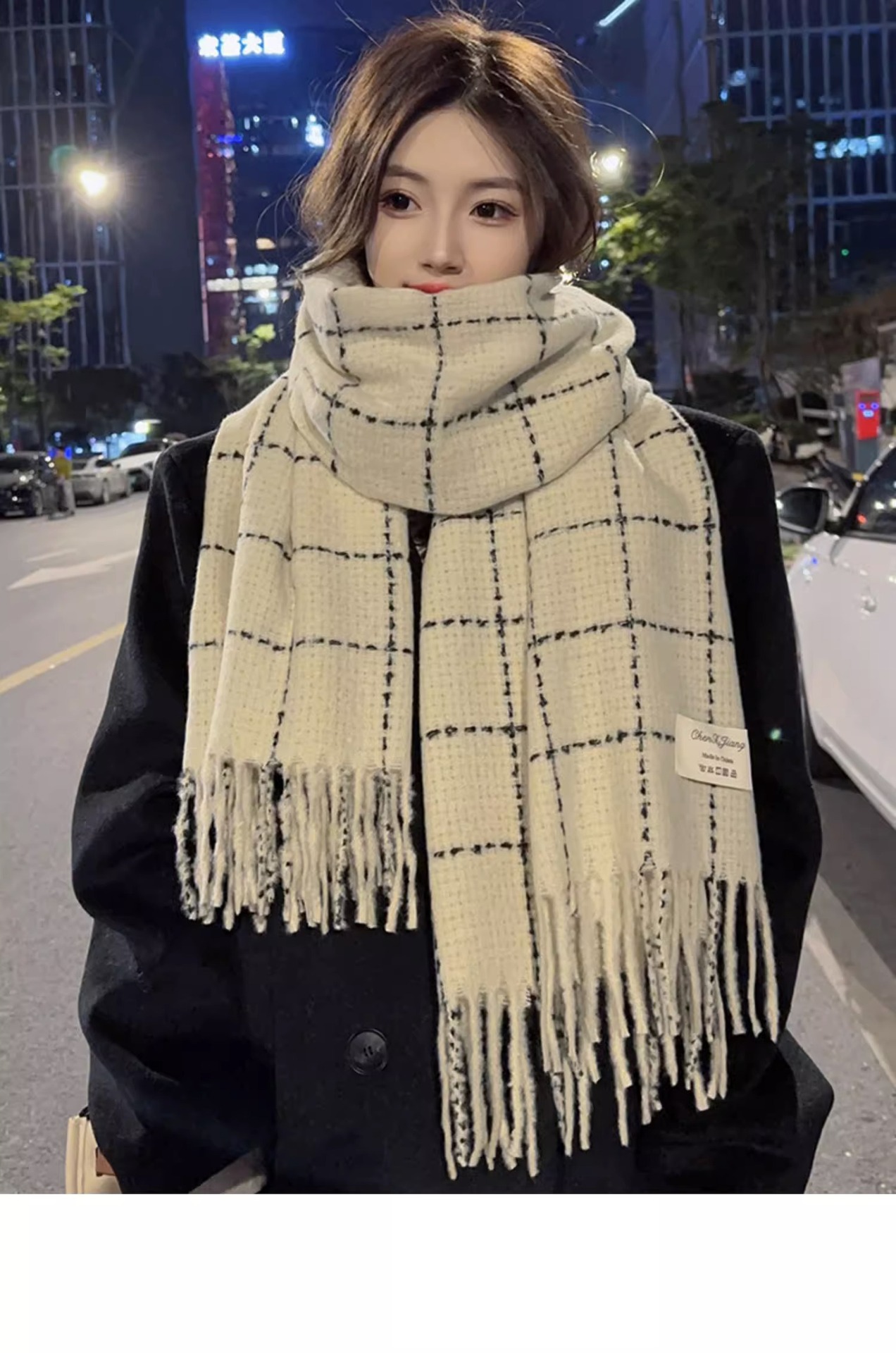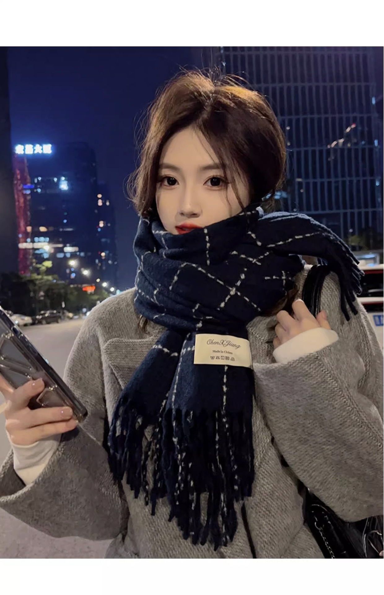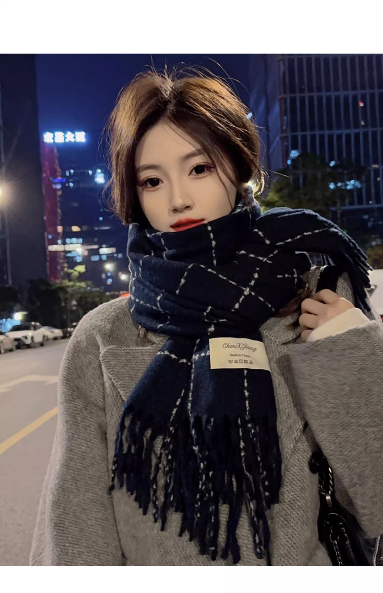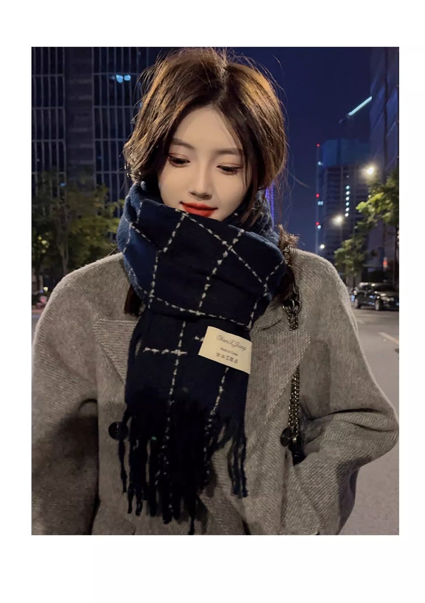 2024 새로운 스타일 스카프 여자 겨울 한국 스타일 올매치 인터넷 연예인 고급 격자 목도리가 학생들을 위해 두꺼운 따뜻한 목