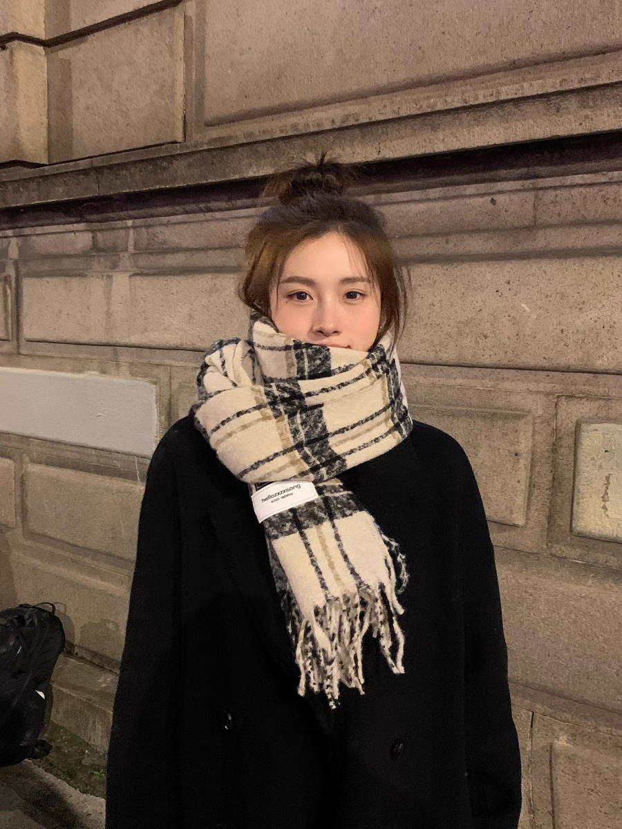아카데미 스타일 베이지 격자 무늬 스카프 여자 겨울 하이 엔드 캐시미어 모방 한국식 레트로 올매치 학생 커플 스카프스토어 가기