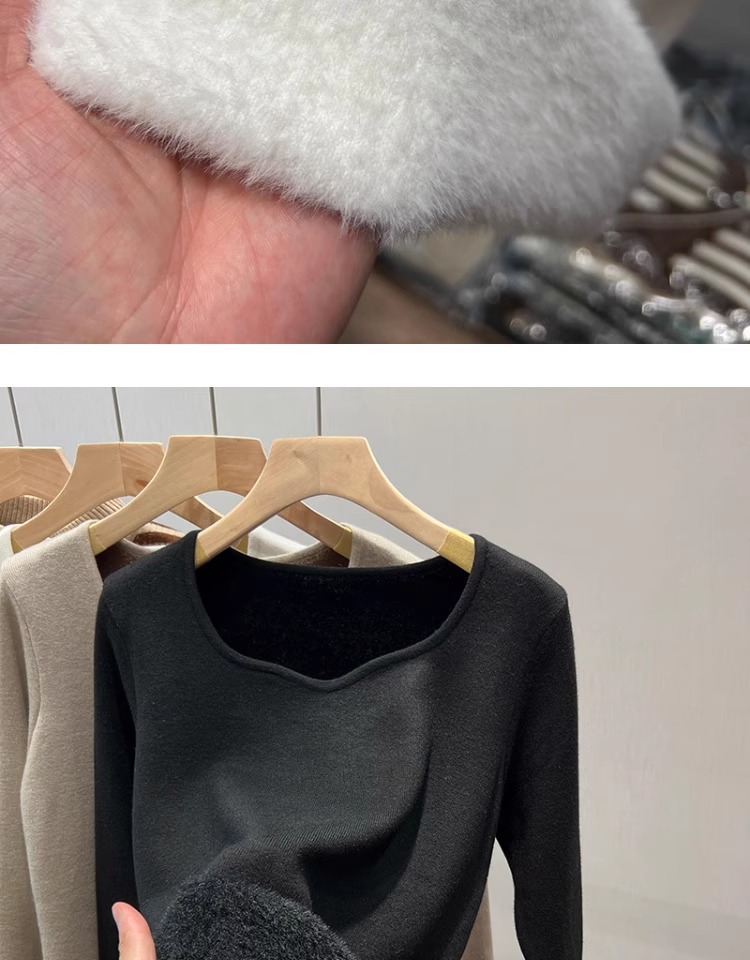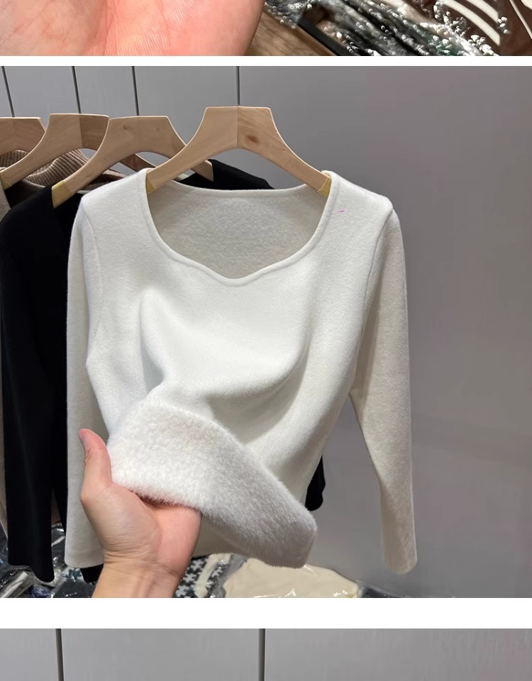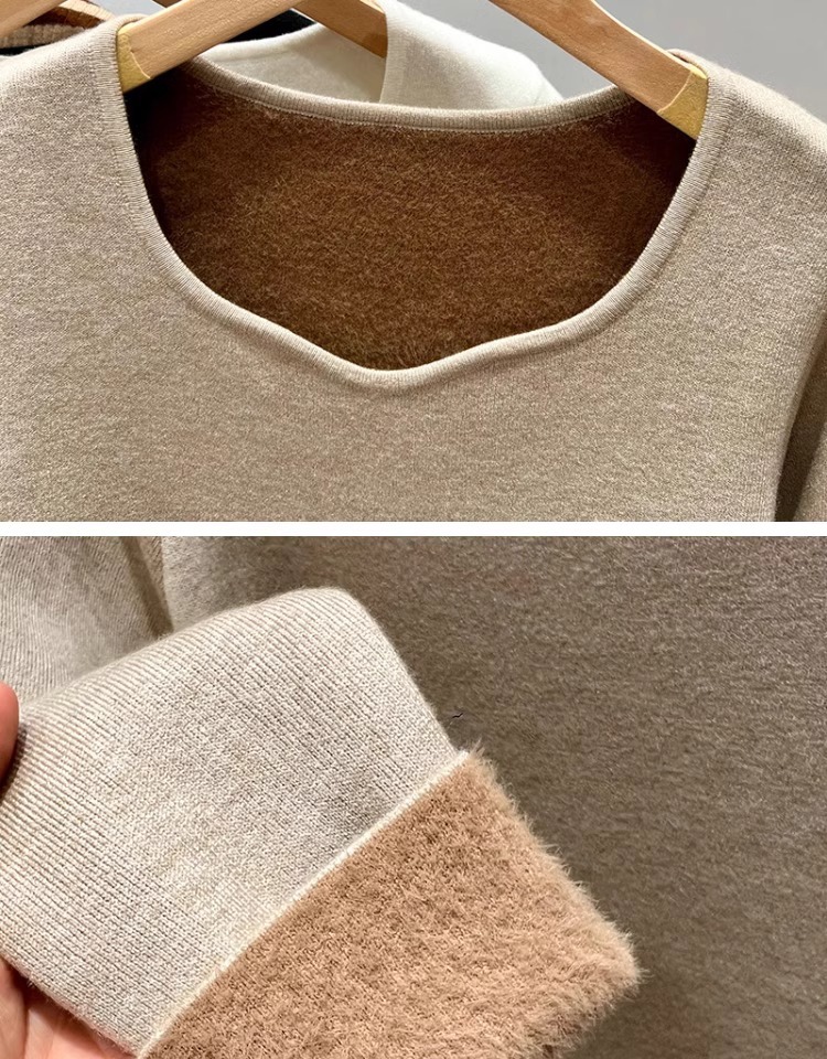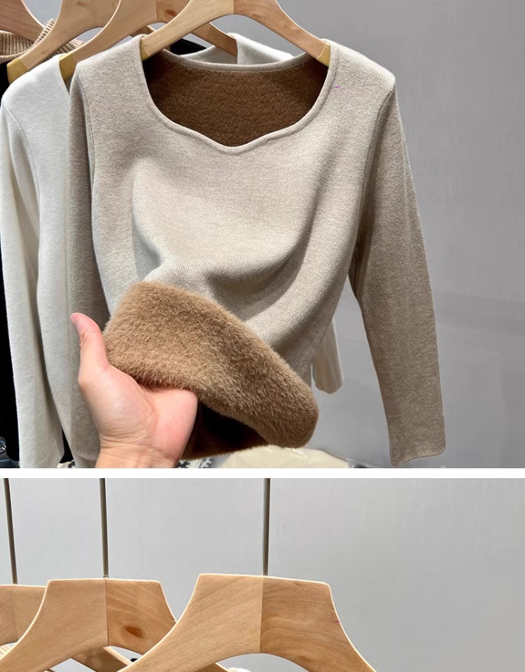 Guipin 누출 브랜드 쇼핑몰 철수 기모 두꺼운 니트 스웨터 여성의 겨울 로우 칼라 원피스 벨벳베이스 셔츠
