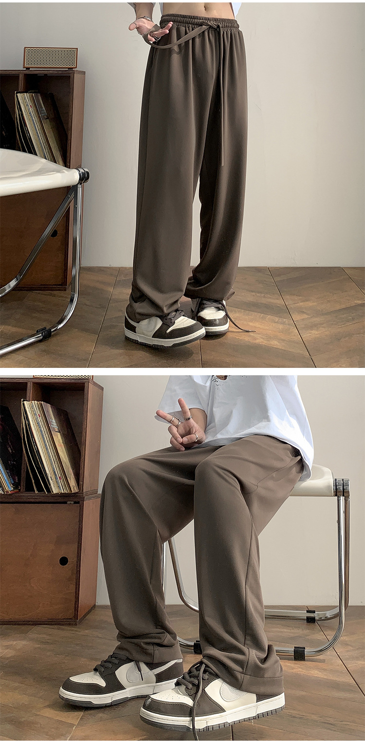 다크 브라운 캐주얼 바지 남성용 봄 새로운 루즈 페이스 스트레이트 와이드 레그 바지 한국 스타일 트렌디 한 데프 롱 바지스토어 가기