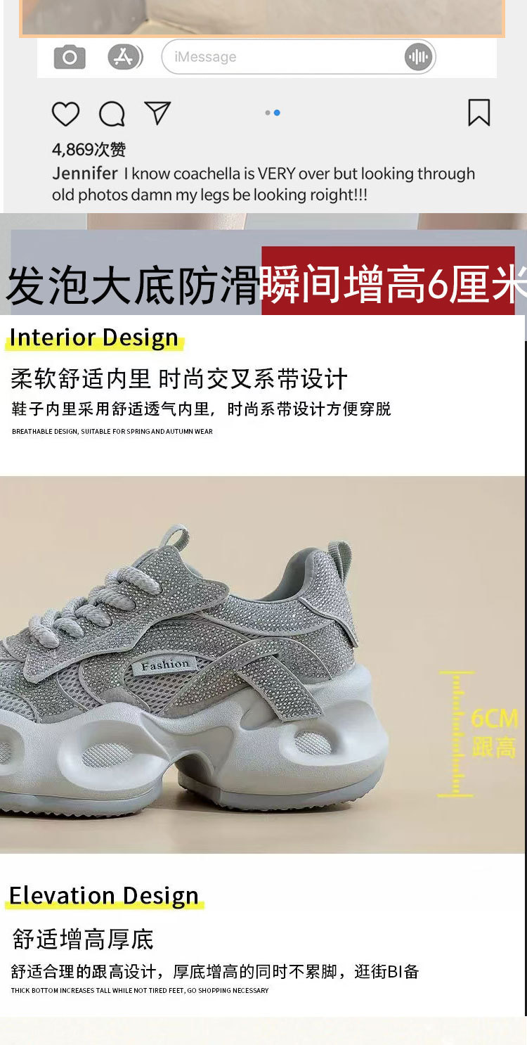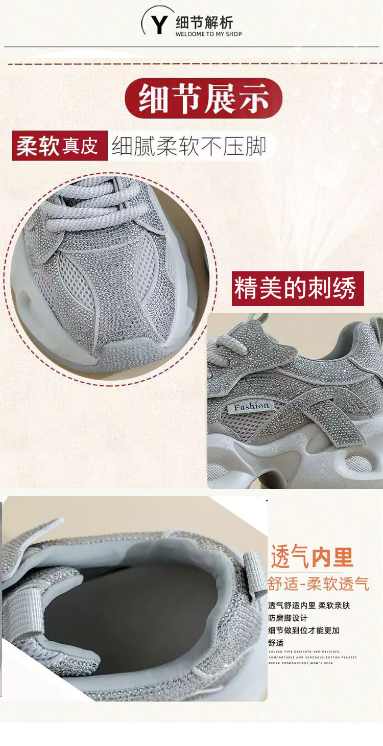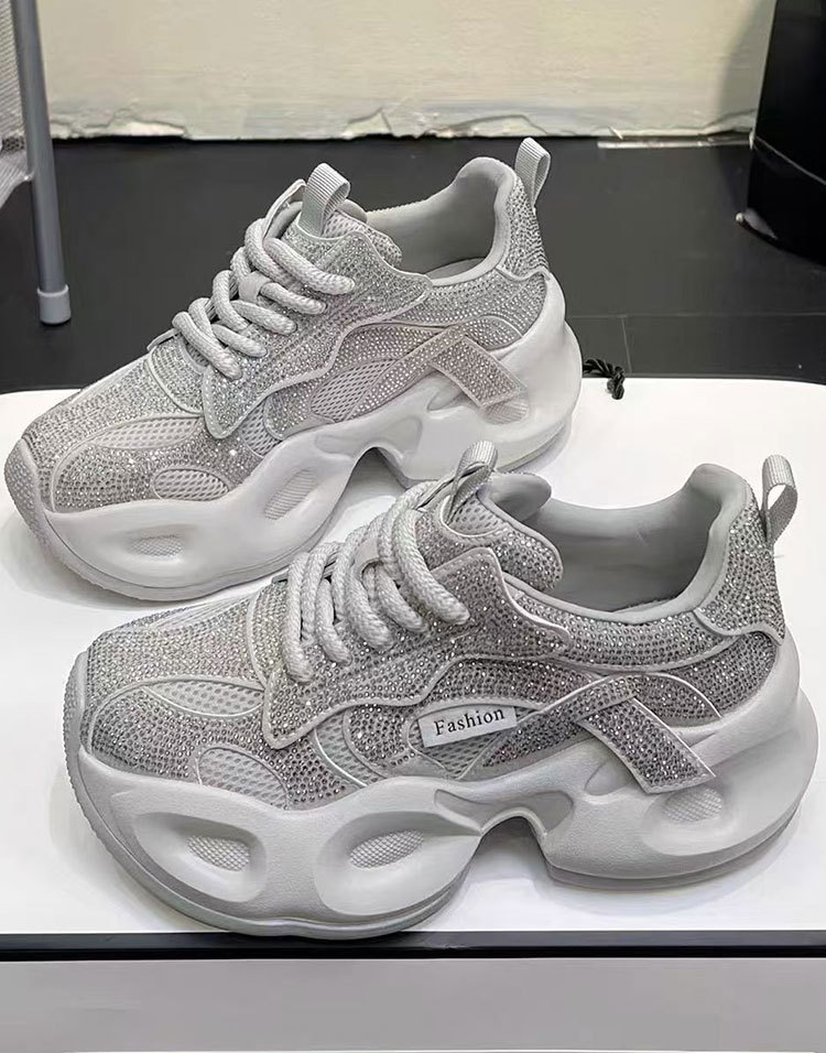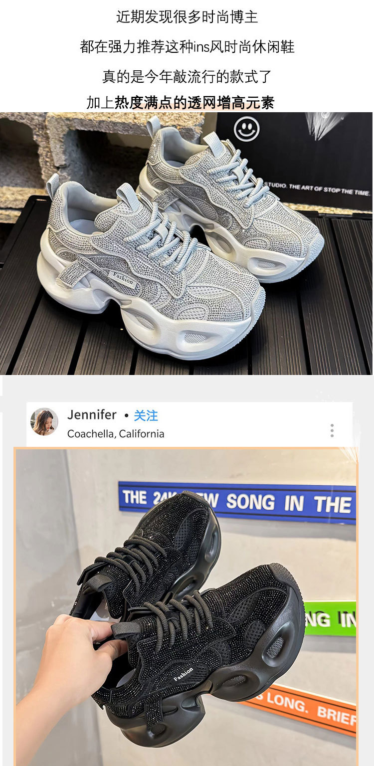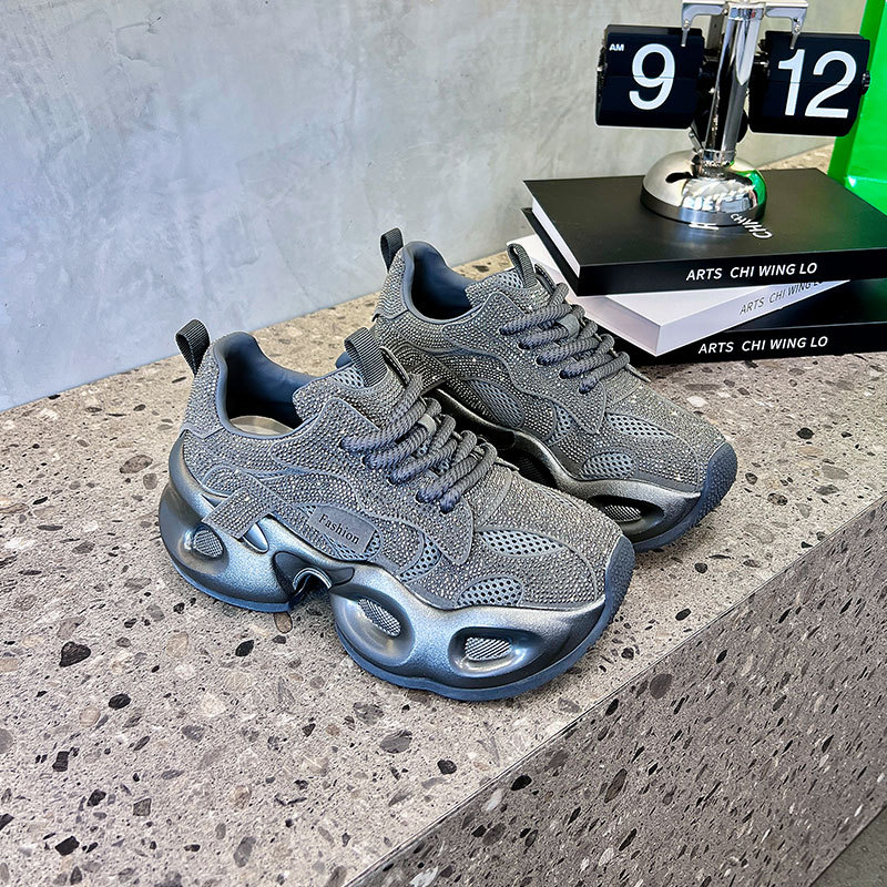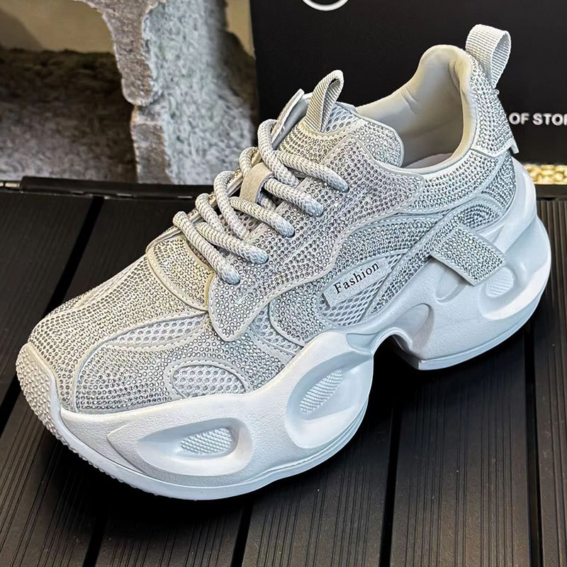 안개꽃 라인스톤 높이 증가 아빠 신발 2025 여름 가을 정품 가죽 두꺼운 밑창 플랫폼 신발 여성 얇은 캐주얼 신발스토어 가기