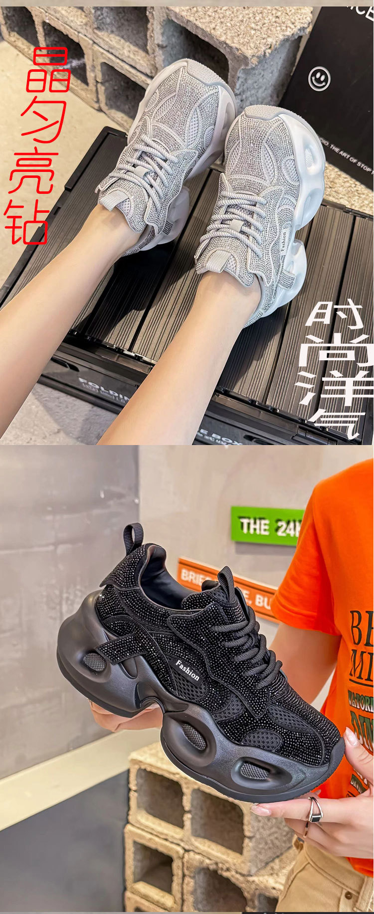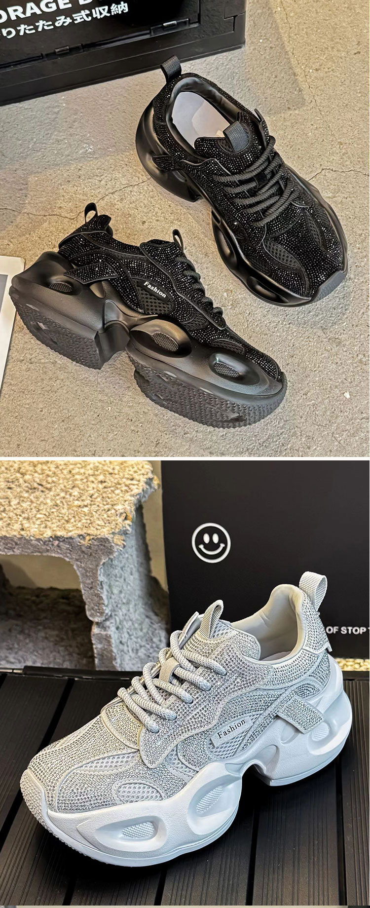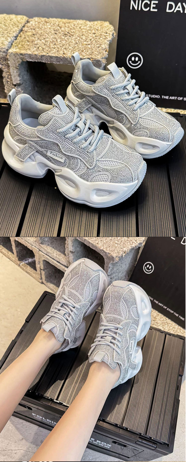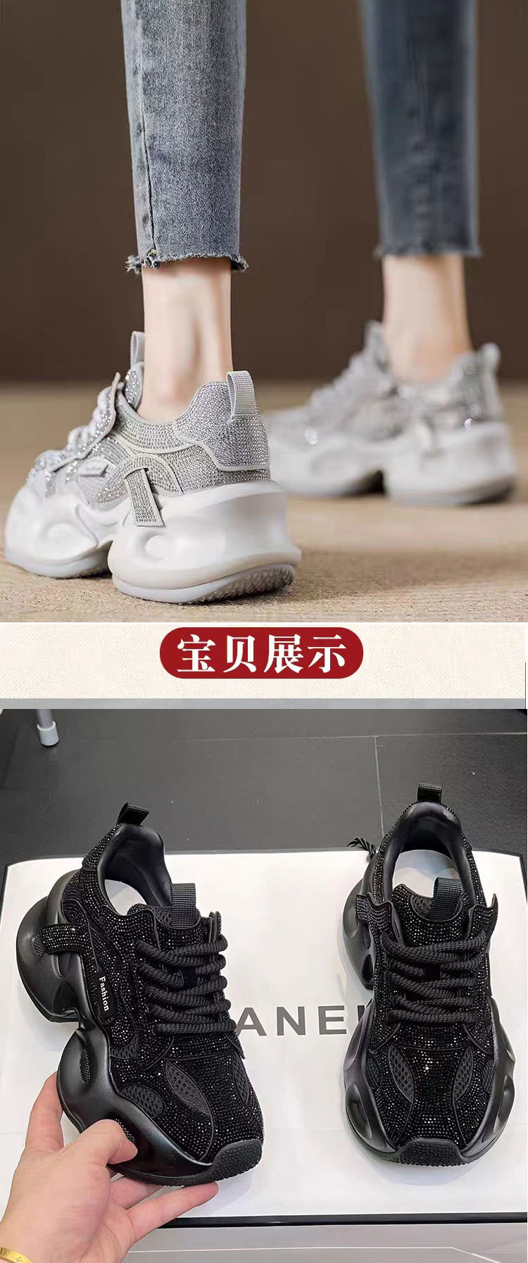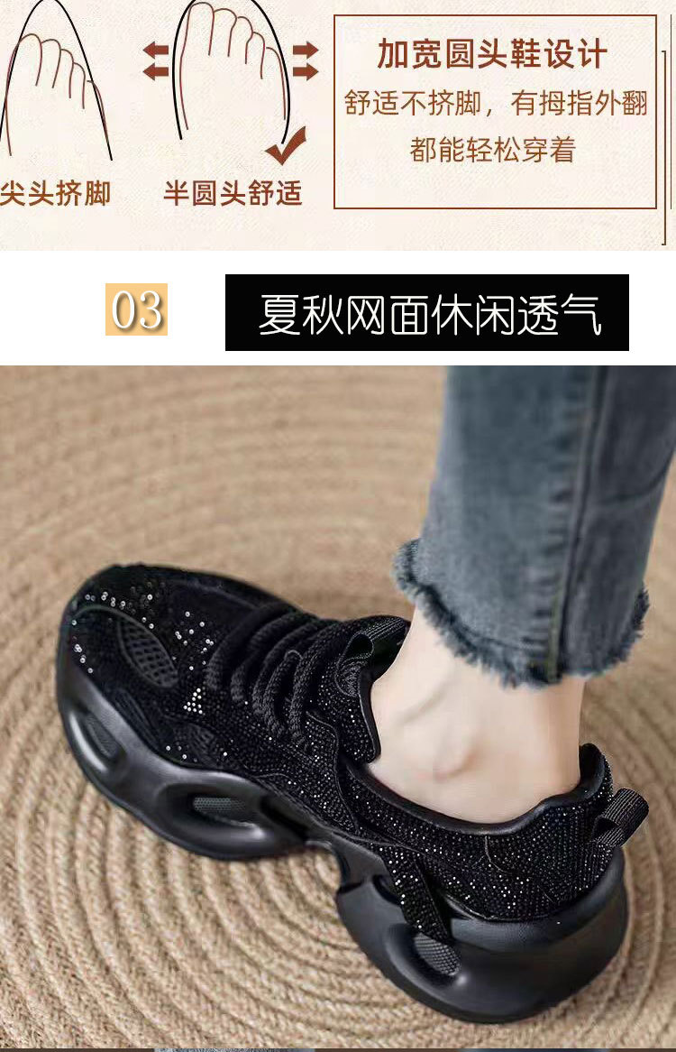 안개꽃 라인스톤 높이 증가 아빠 신발 2025 여름 가을 정품 가죽 두꺼운 밑창 플랫폼 신발 여성 얇은 캐주얼 신발스토어 가기