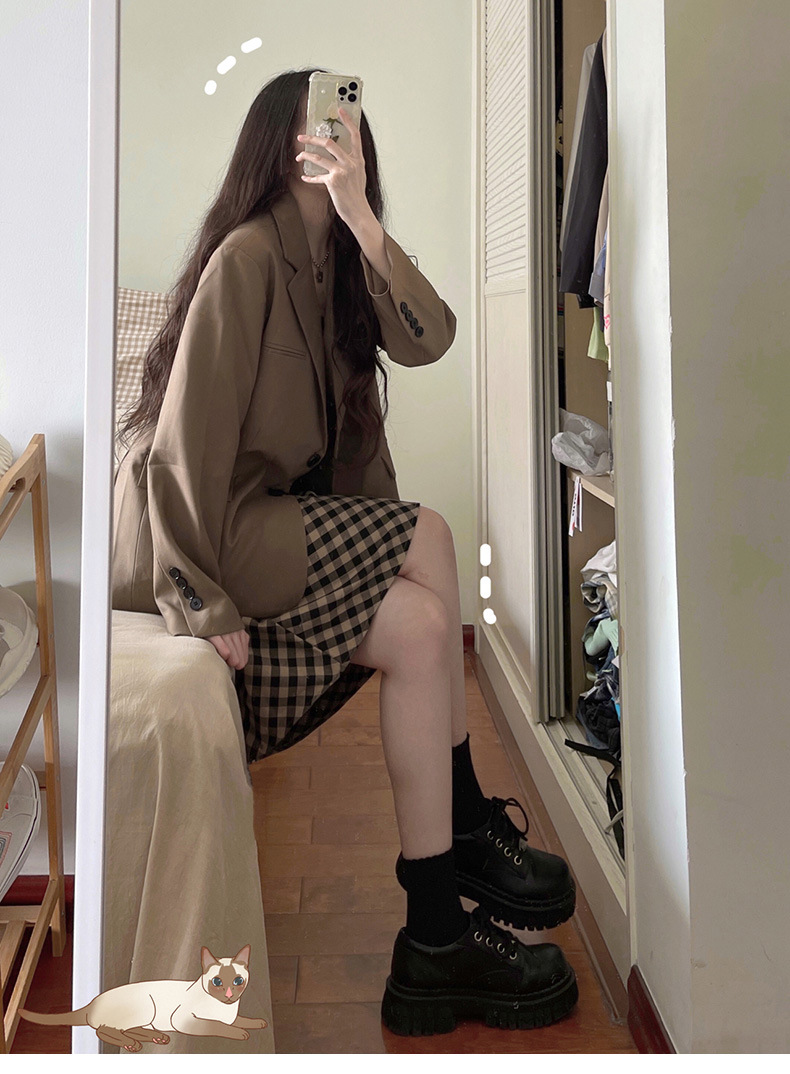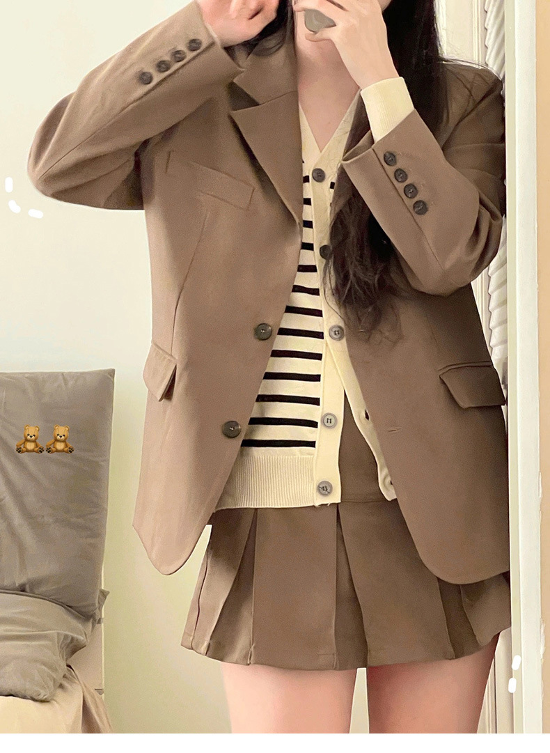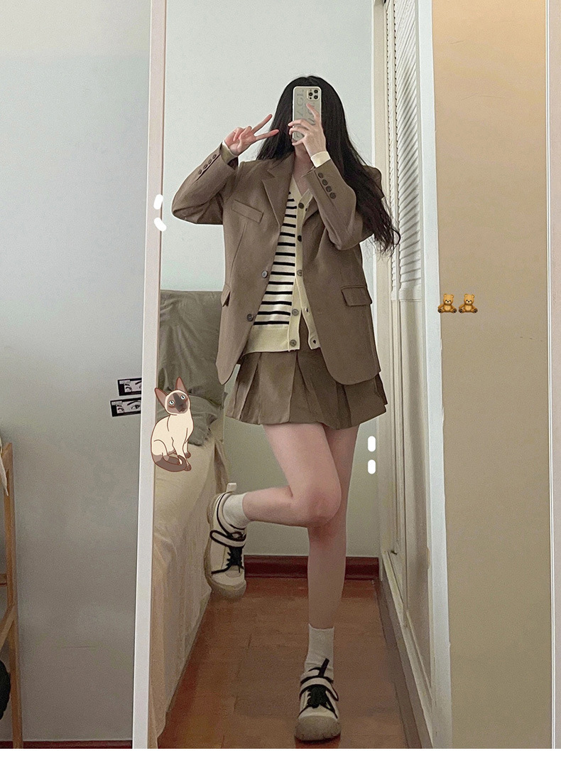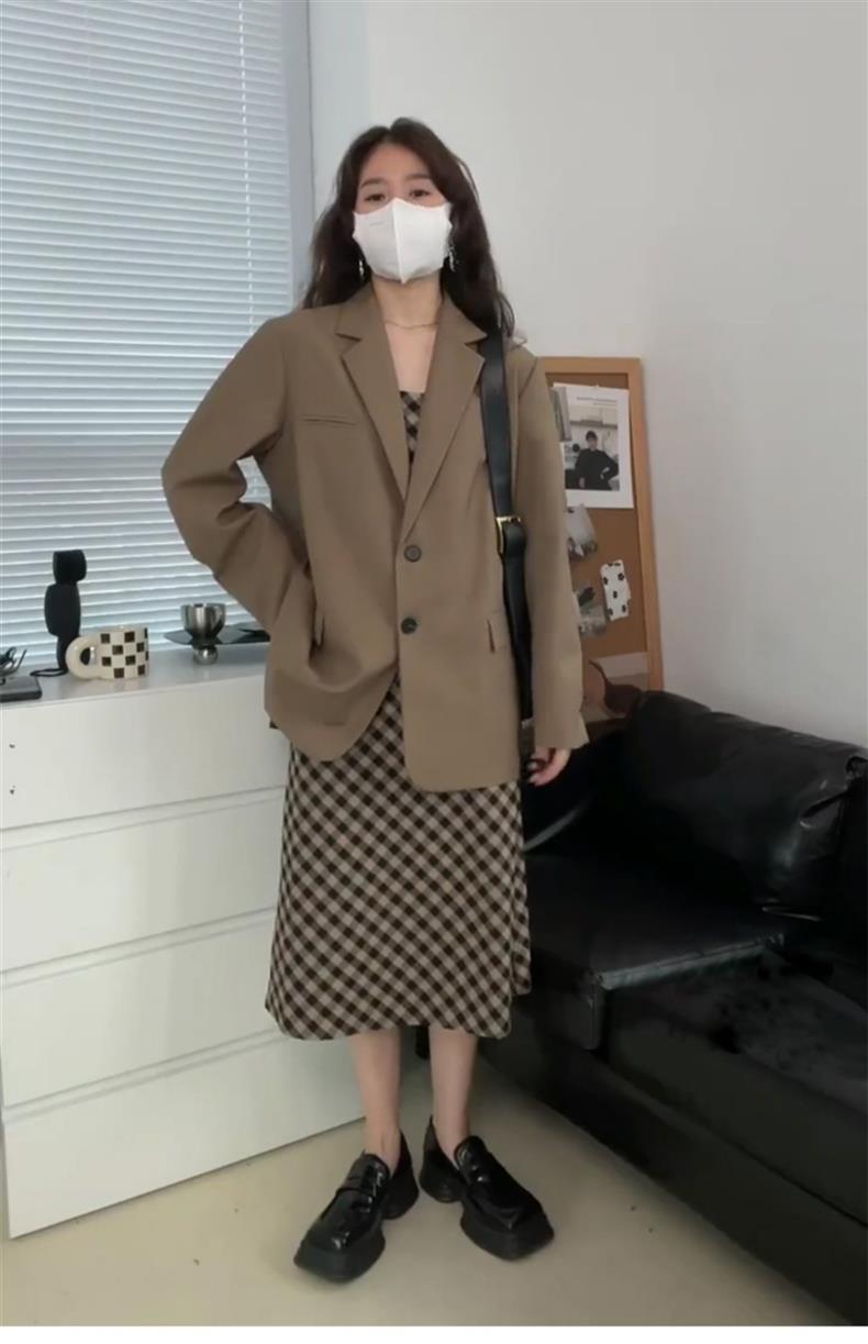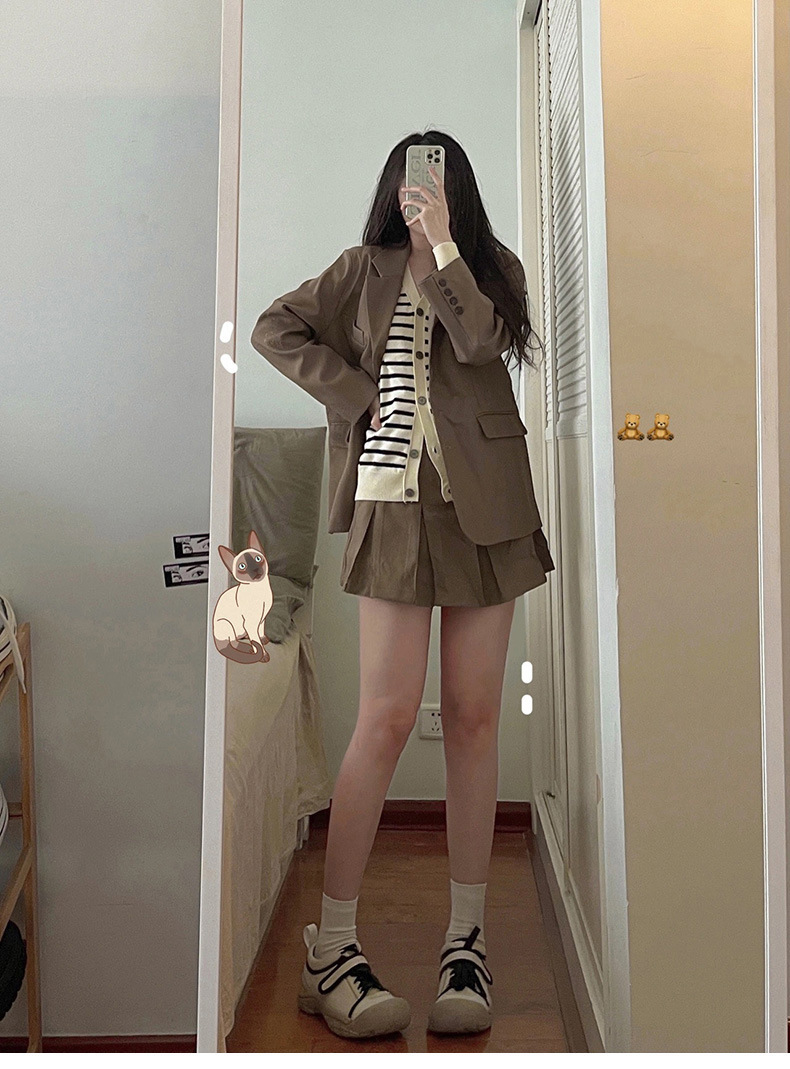 YT21930 다크 브라운 작은 세트 코트 여성의 작은 2024 봄과 가을 새로운 튀김 거리 하이 엔드 세트 스커트스토어 가기