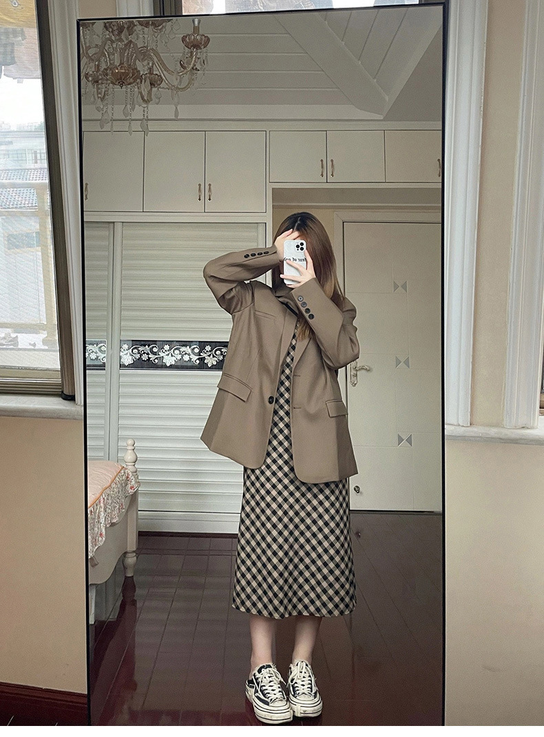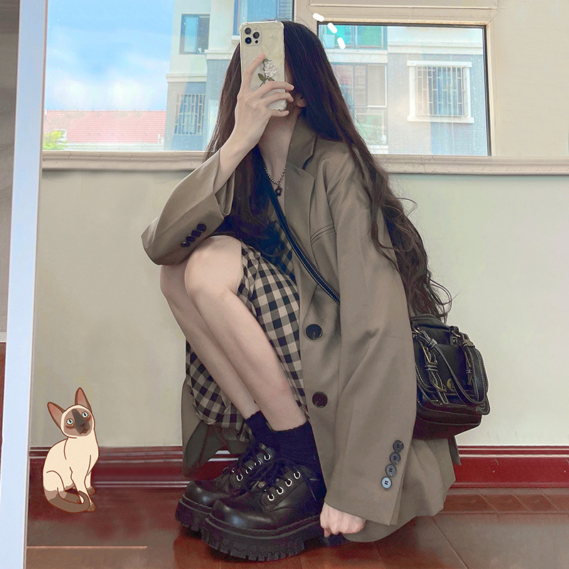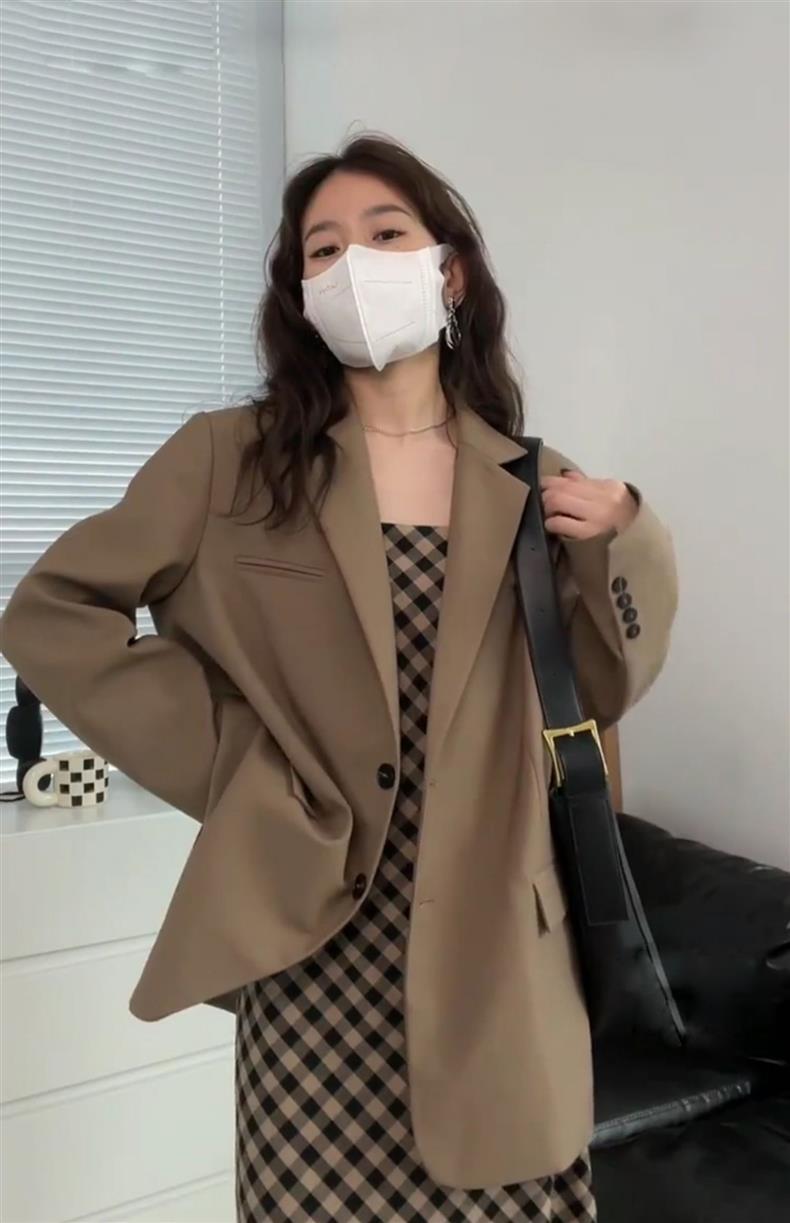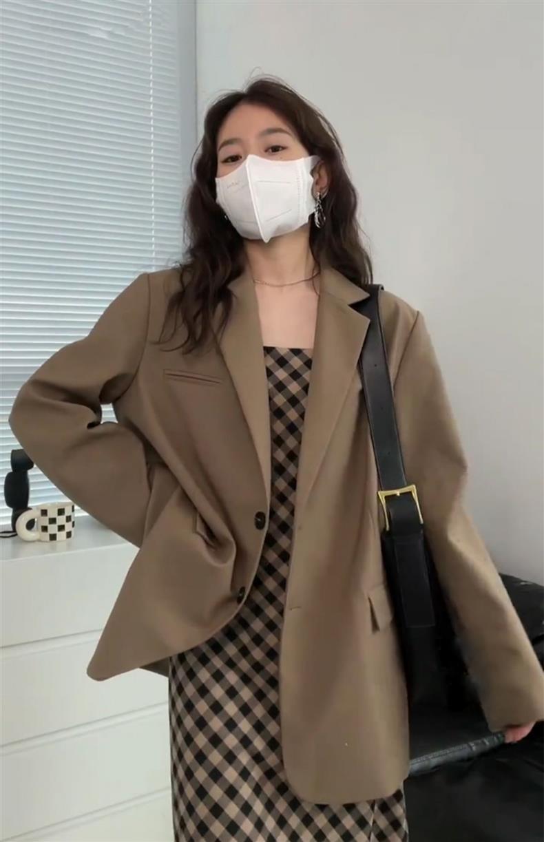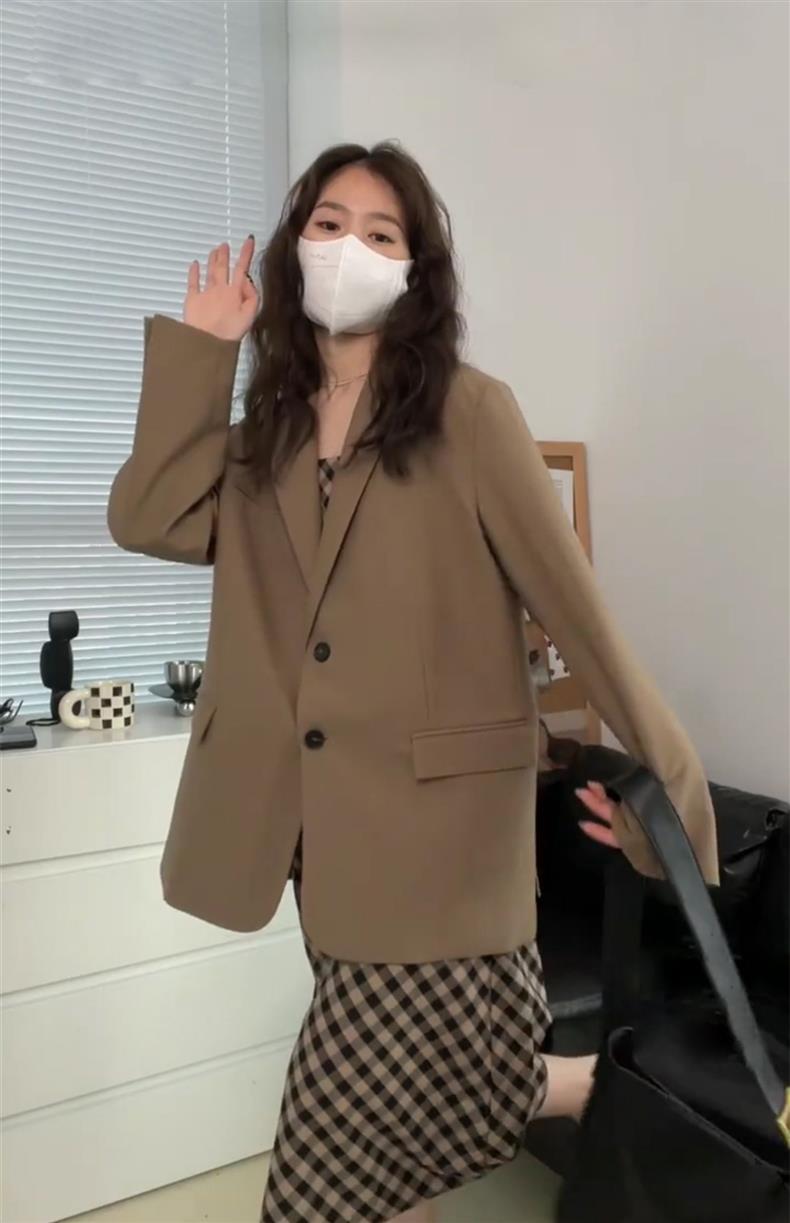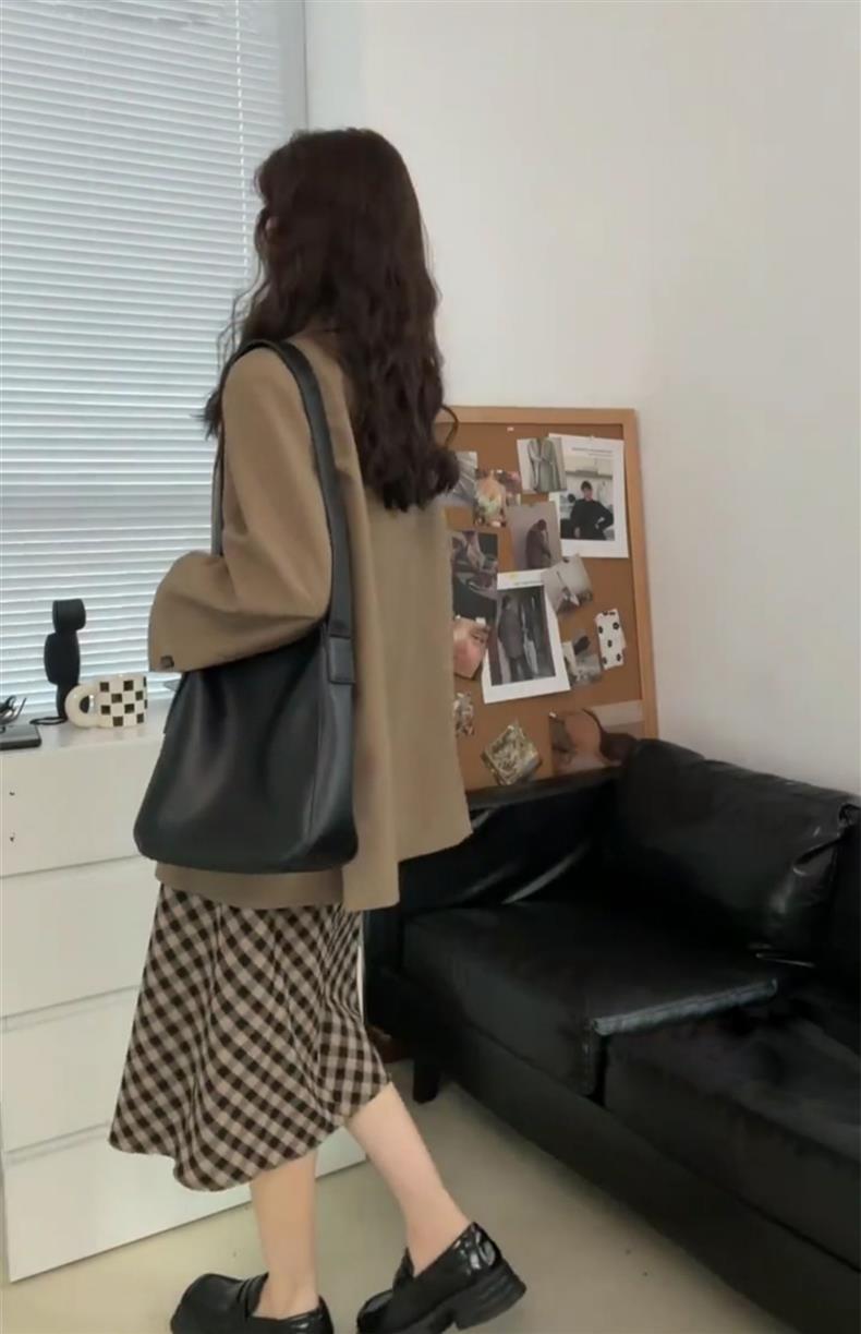 YT21930 다크 브라운 작은 세트 코트 여성의 작은 2024 봄과 가을 새로운 튀김 거리 하이 엔드 세트 스커트스토어 가기