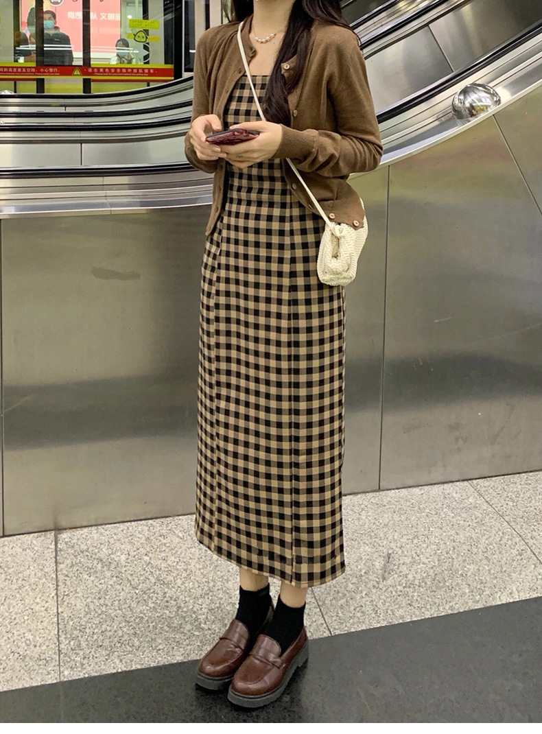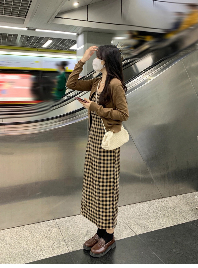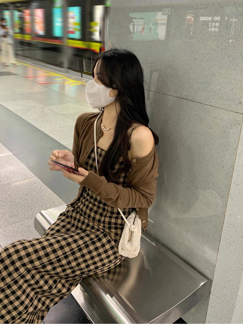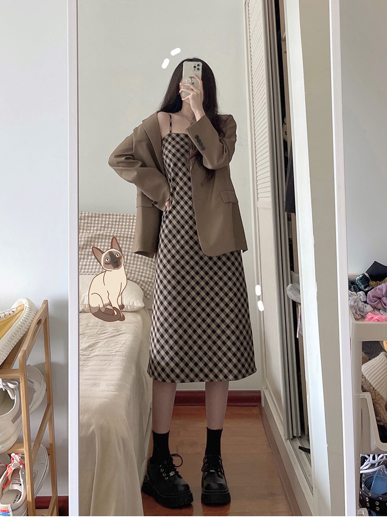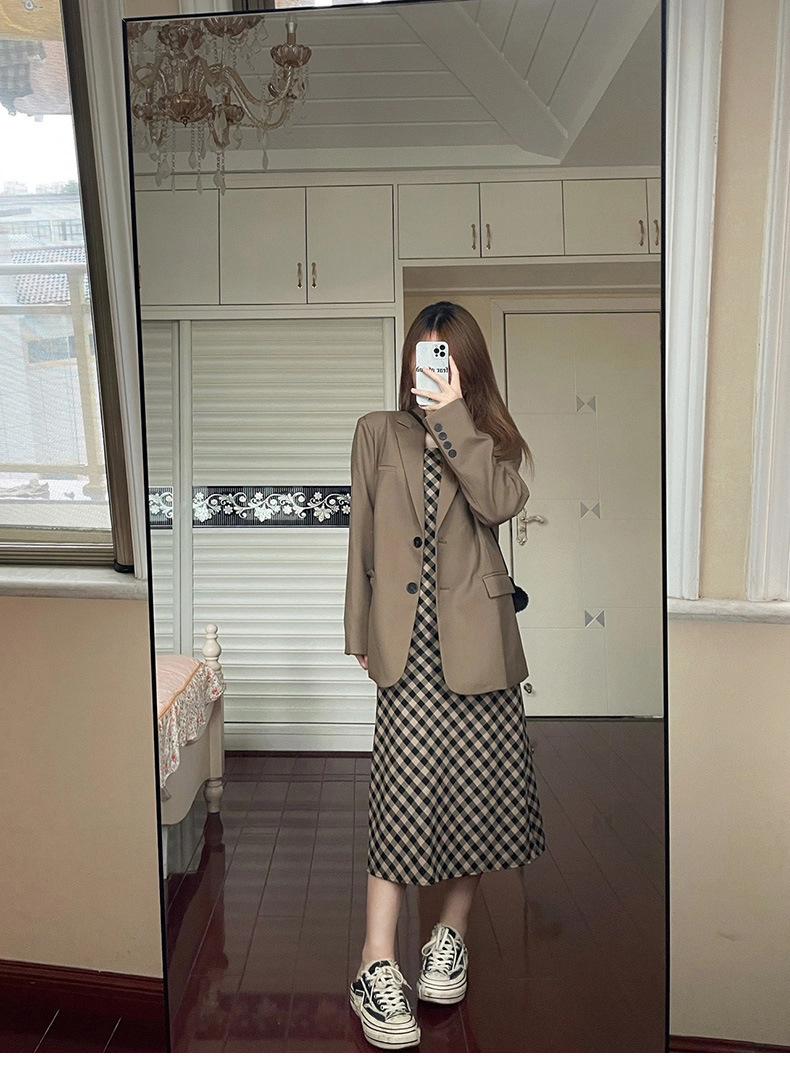 YT21930 다크 브라운 작은 세트 코트 여성의 작은 2024 봄과 가을 새로운 튀김 거리 하이 엔드 세트 스커트스토어 가기