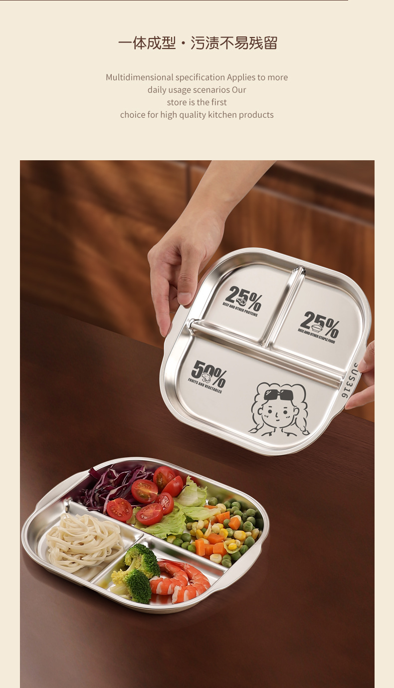 211 체중 감량을위한 지방 감소식이 판 가정용 스테인레스 스틸 플레이트 특수 피트니스 임산부 양적 3 구획 식이 판스토어 가기