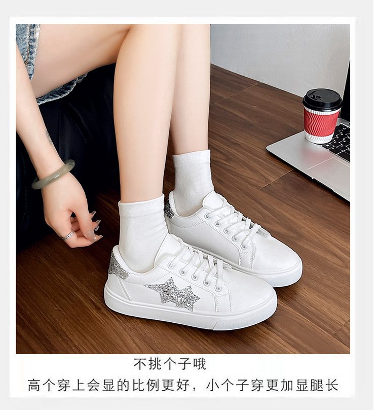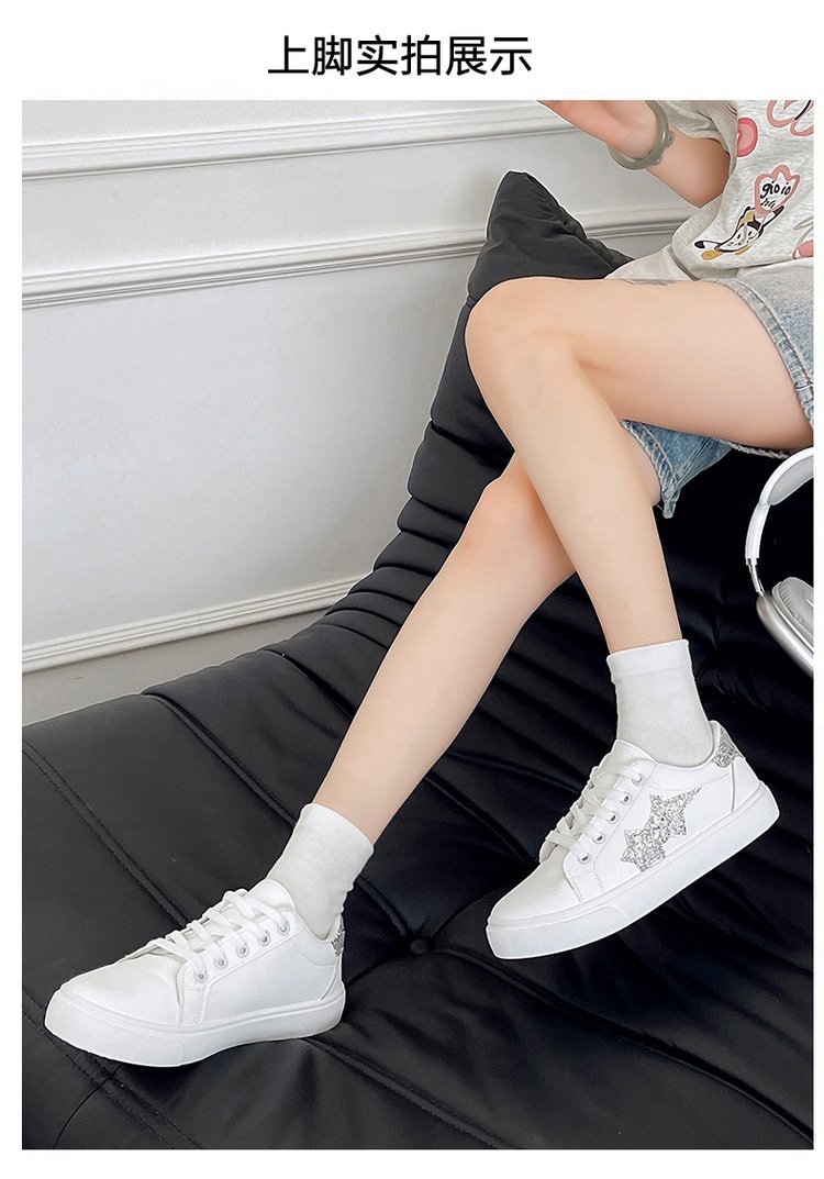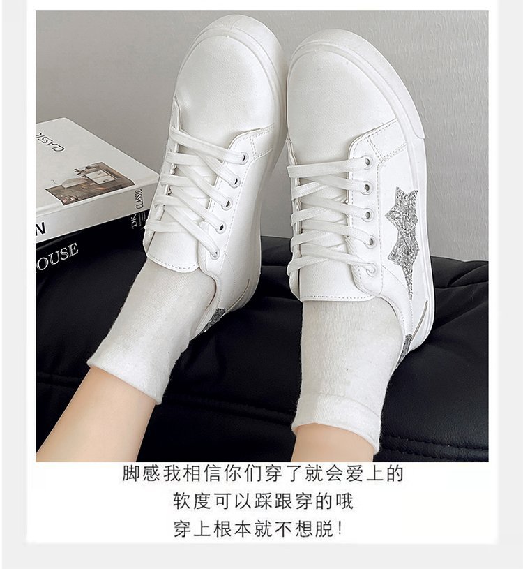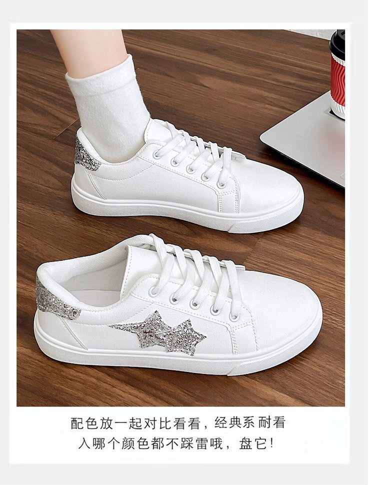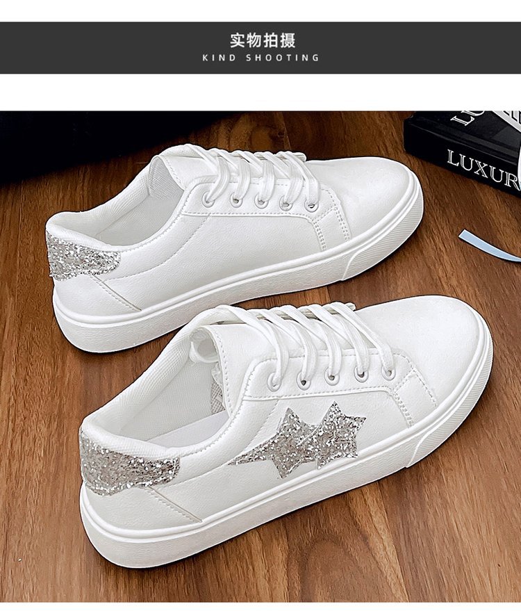 패션 캐주얼 화이트 슈즈 2024 가을 새로운 한국 스타일 파인 플래시 올매치 얕은 입 레이스 업 스포츠 스니커즈 여성 트렌디