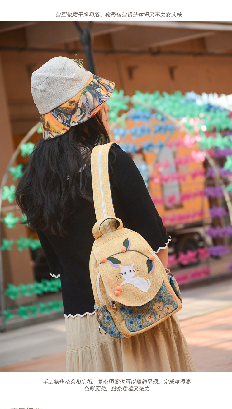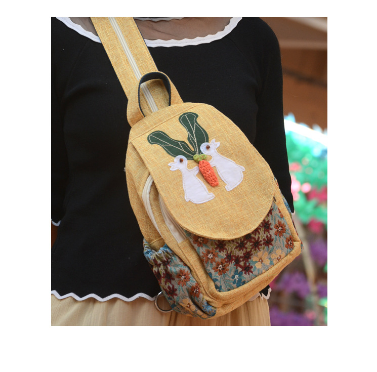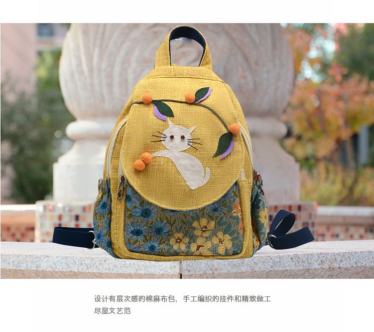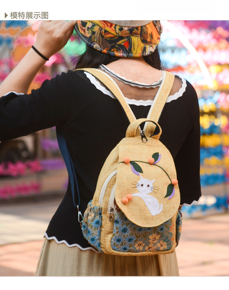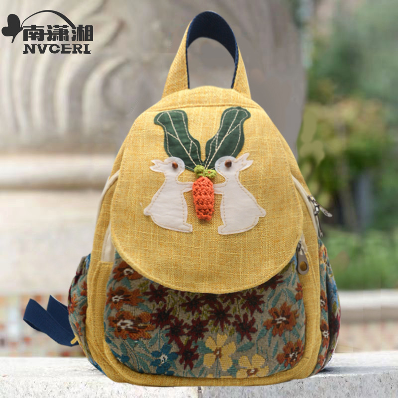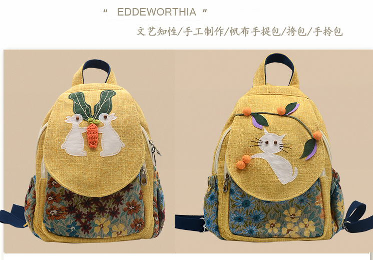 수제 패브릭 배낭 만화 배낭 귀여운 가방 어린이 배낭 여성 예술적 가방 캐주얼 가방 여성