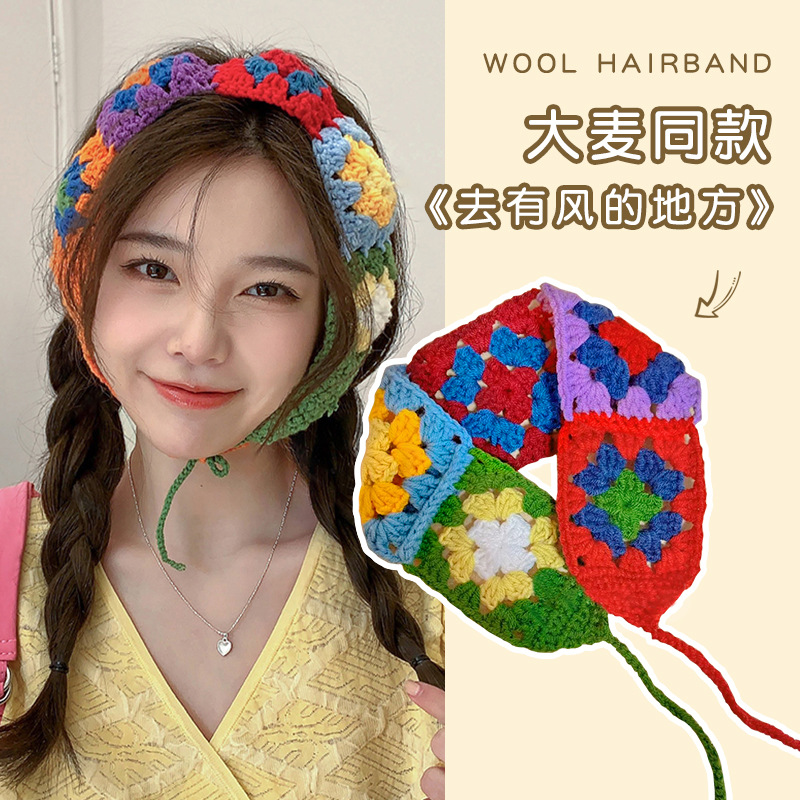 보리 동일 스타일 헤어 밴드 여성용 수제 크로 셰 뜨개질 바람이 부는 곳으로 가기 위해 니트 테이프 니트 울 페이스 워시 헤드웨어 패션