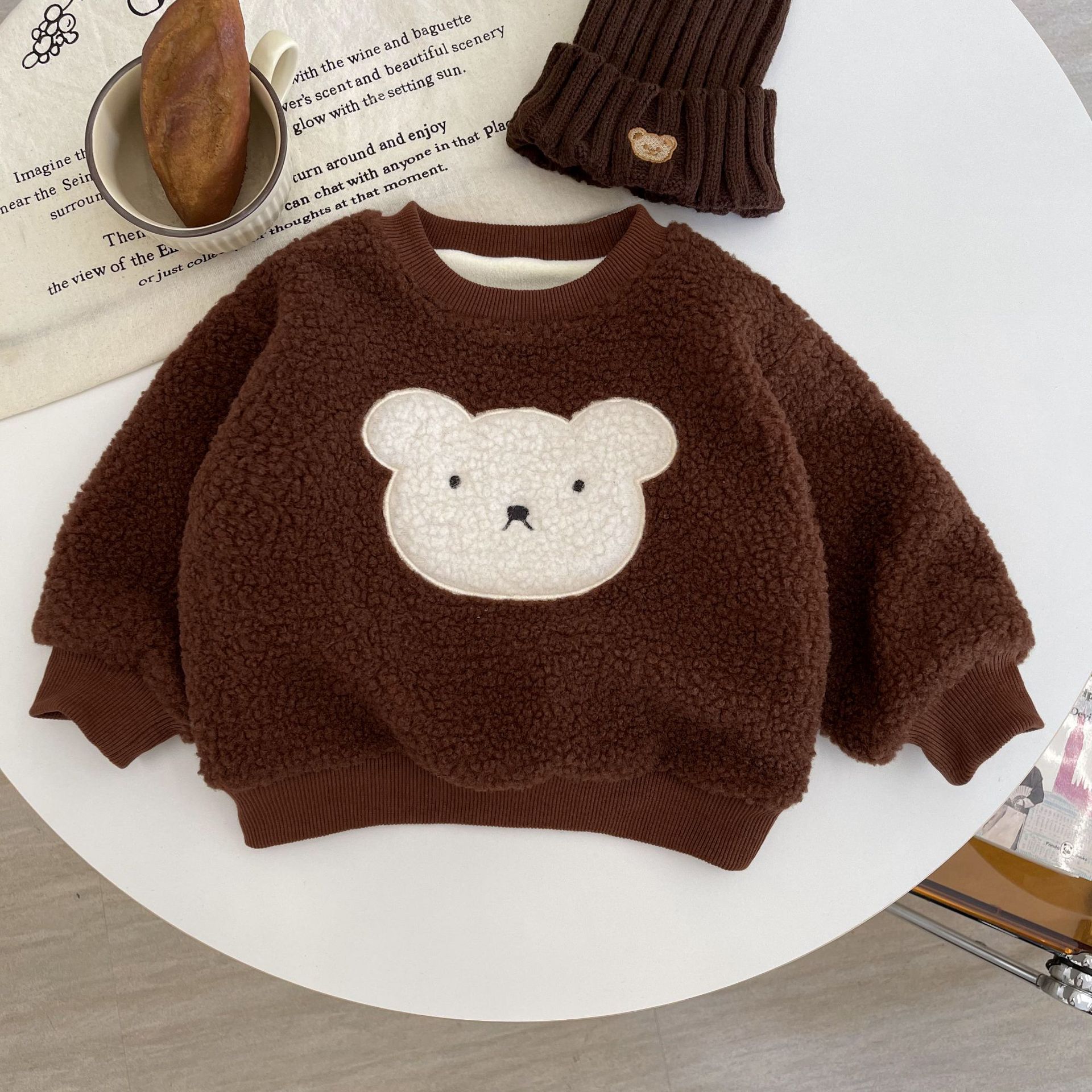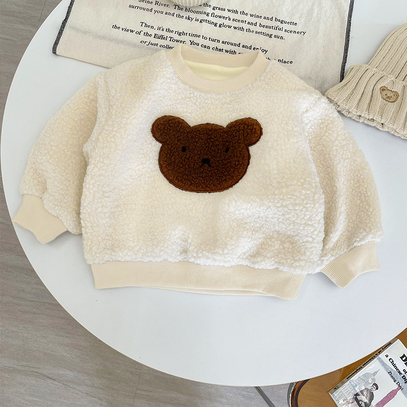 어린이 의류 어린이 양모 크루 넥 긴팔 스웨트 셔츠 겨울 의류 새로운 스타일 기모 두꺼운 만화 풀오버 스웨트 코트 트렌디스토어 가기