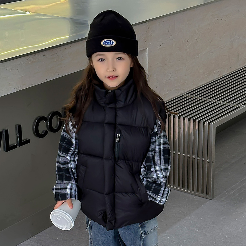 2024 새로운 가을과 겨울 소년과 소녀 아기 조끼 겨울은 두꺼운 따뜻한 아이들의 검은 외부 착용 웨어 재킷 트렌디스토어 가기