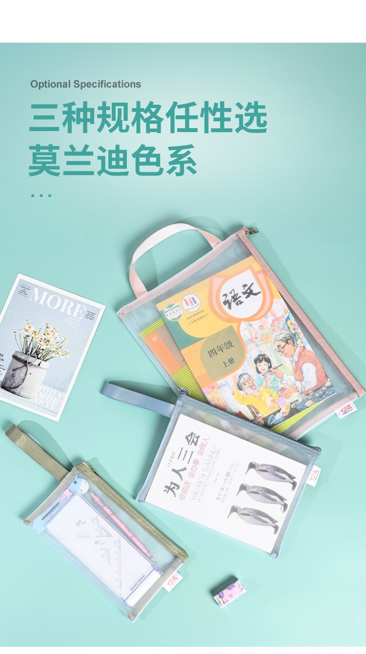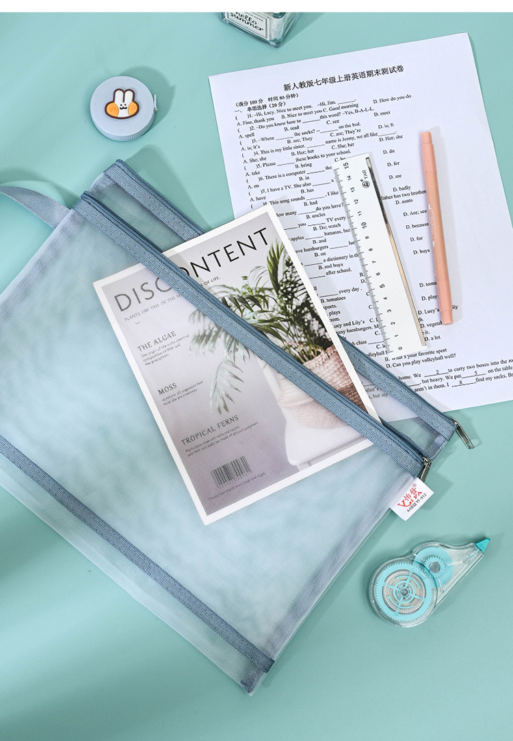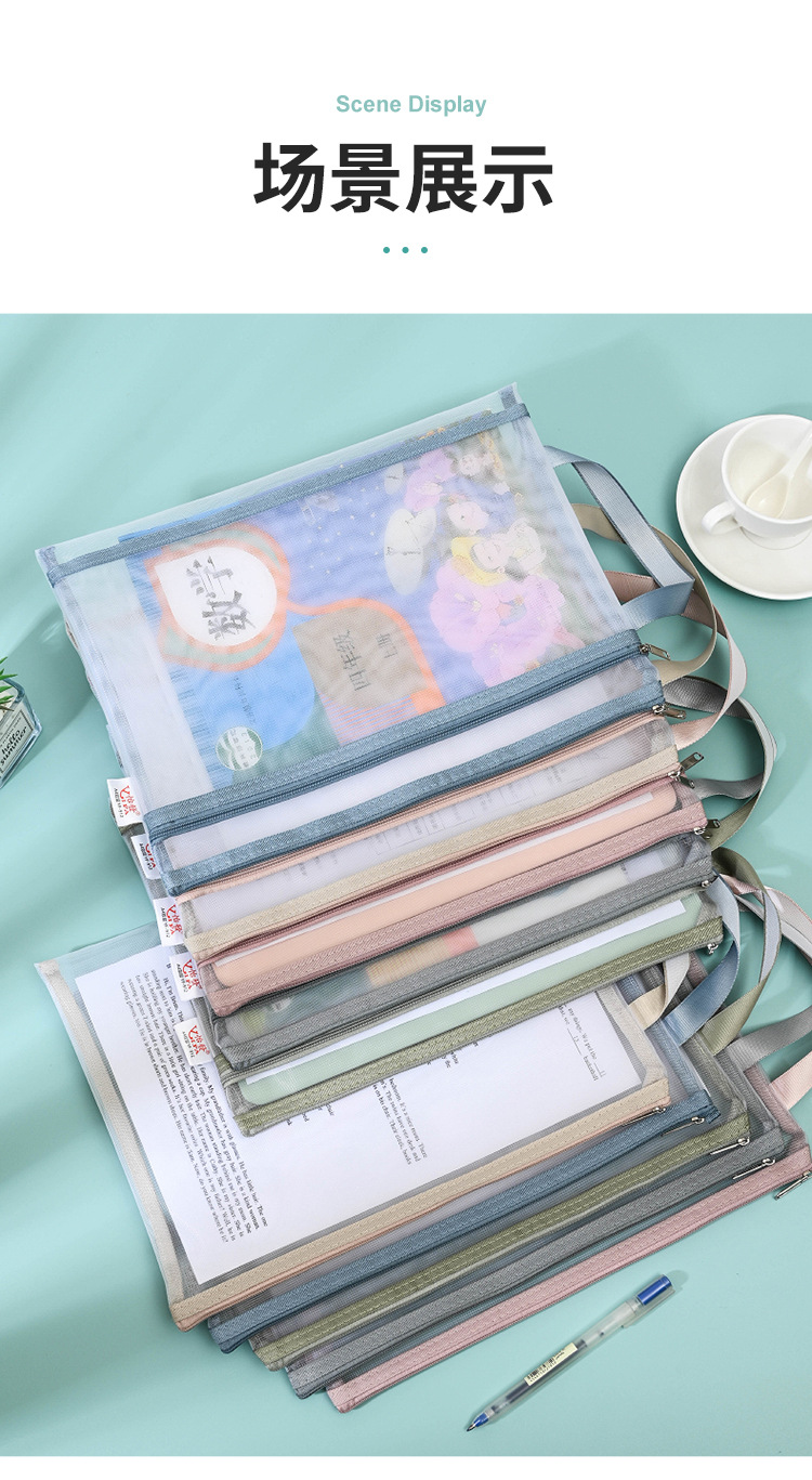 Morandi A4 파일 가방 메쉬 테스트 종이 저장 가방 A5 분류 된 빌 정보 가방 A6 연필 가방 인쇄 가능한 로고