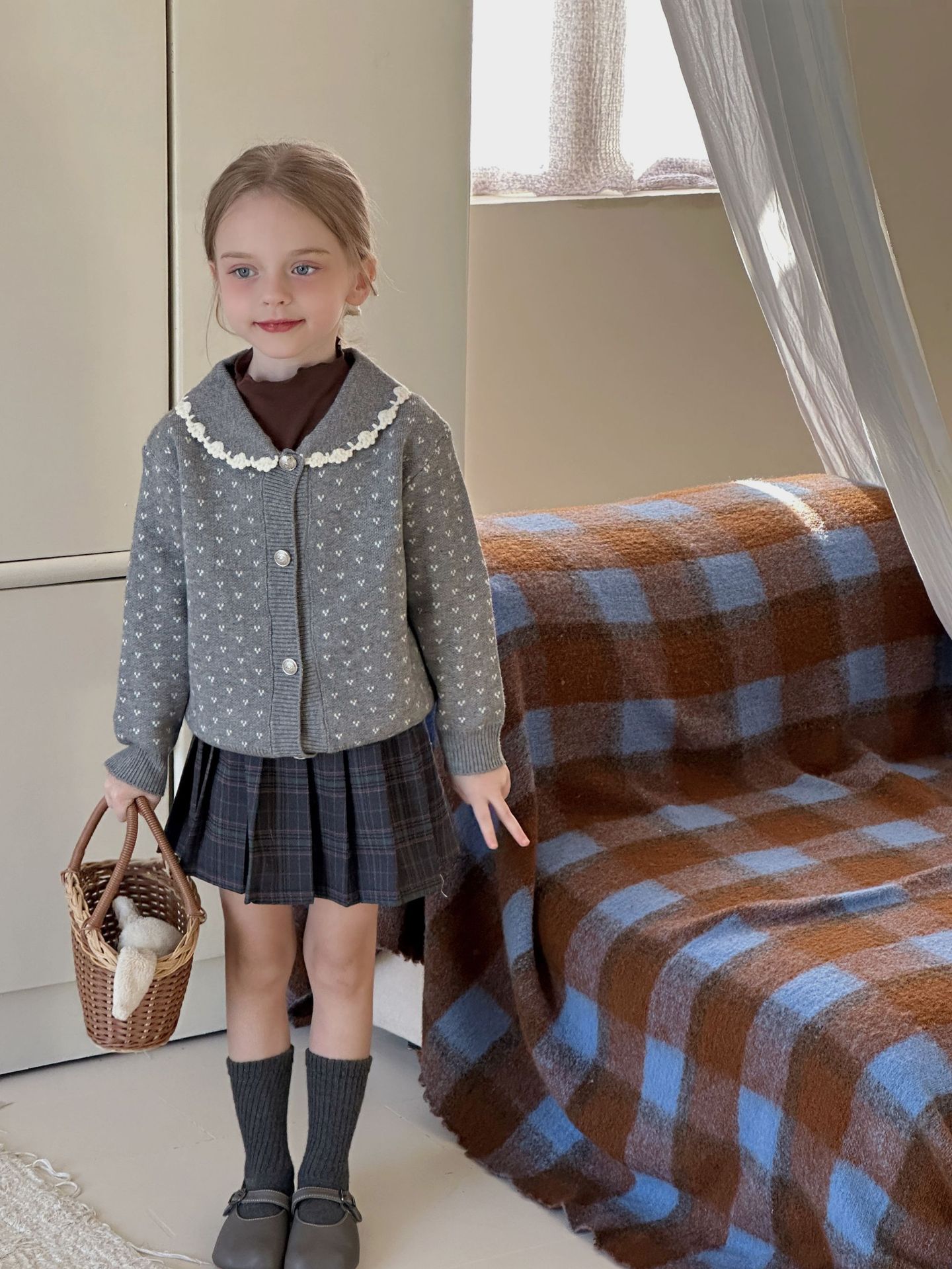 소녀의 대학 스타일 스커트 2024 가을 새로운 간단한 올 매치 스커트 어린이 격자 무늬 미끄럼 방지 주름 치마스토어 가기